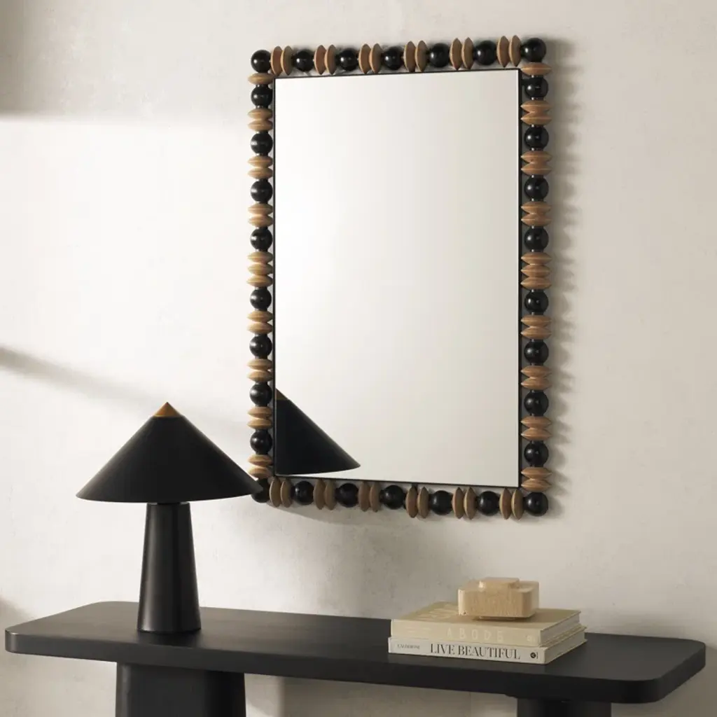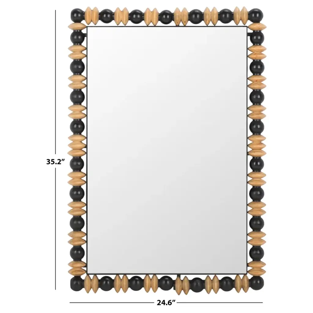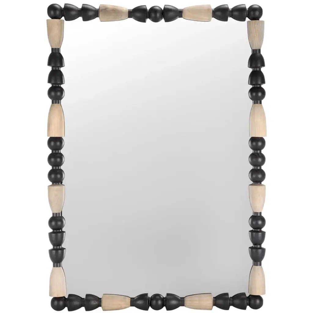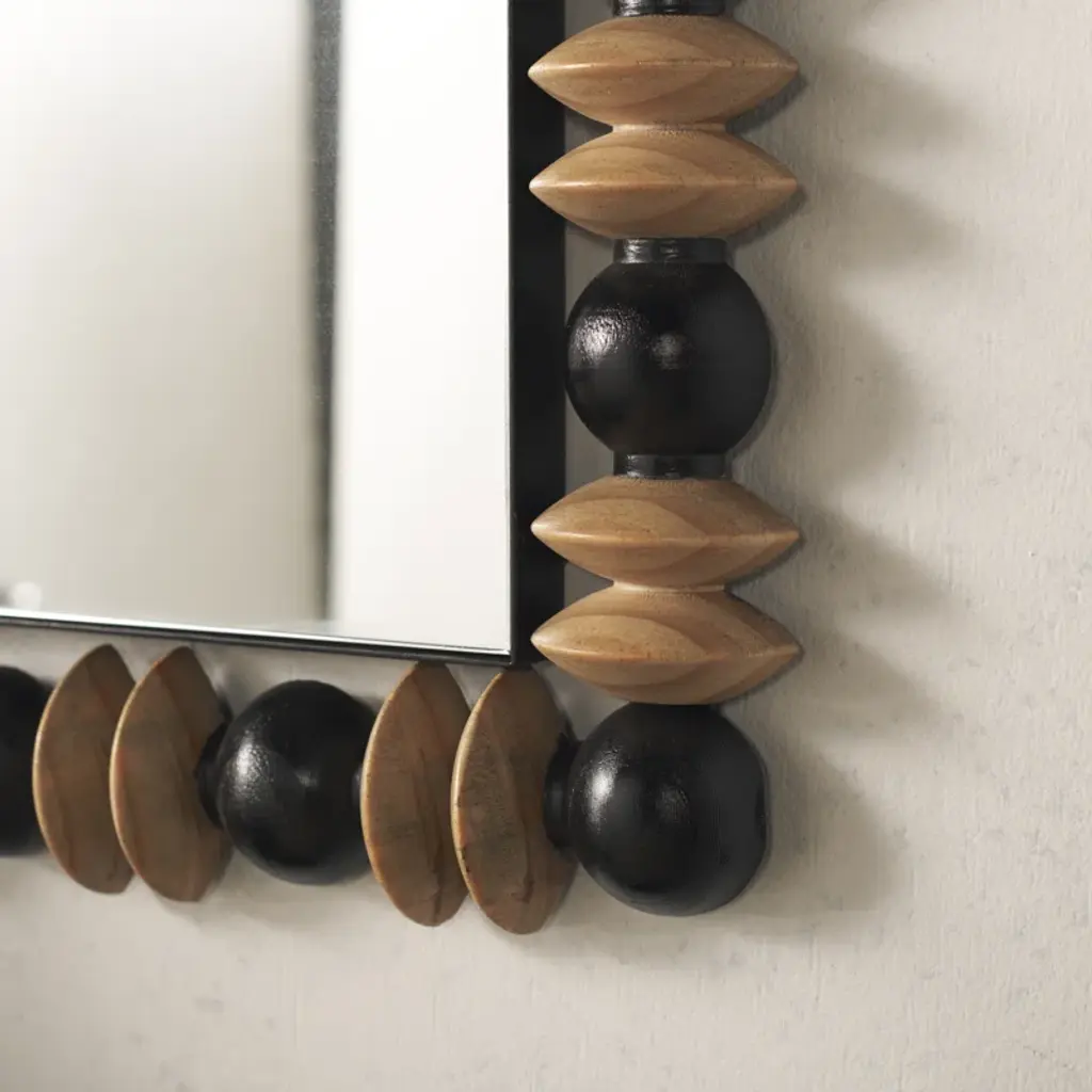 Introducing the Azaria mirror, a harmonious blend of nature-inspired aesthetics with a contemporary twist. This striking piece is crafted using pinewood and metal, boasting a color palette that incorporates both black and natural hues to create an eye-catching contrast. The organic shapes of the wooden elements around the mirror bring a touch of the outdoors into your living space, while the versatile color scheme ensures it can complement various interior design styles. This stylish mirror not only serves as a functional piece for reflection but also acts as an alluring wall decor, effortlessly elevating the sophistication of any room it adorns. With its well-balanced design, the Azaria mirror merges practicality with aesthetic appeal, making it a delightful selection for those who appreciate natural elements fused with modernity in their decor.