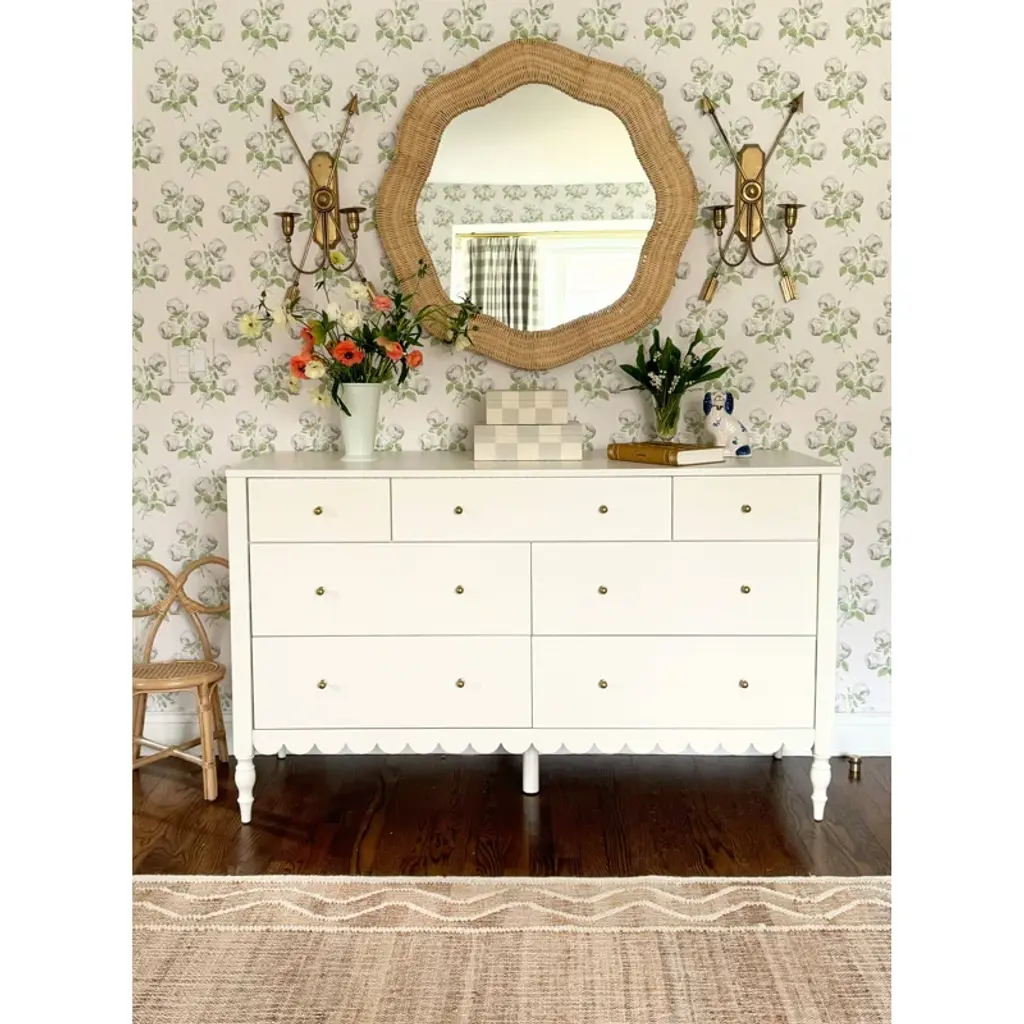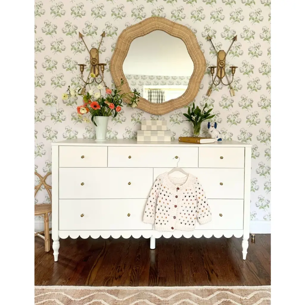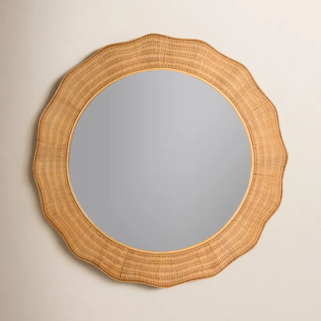 Exclusively Designed by Renowned Designer, Erin Gates; her Scalloped Linden Round Wall Mirror features intircate details through it's hand-crafted construction process; sure to add a statement to a space of any style.
