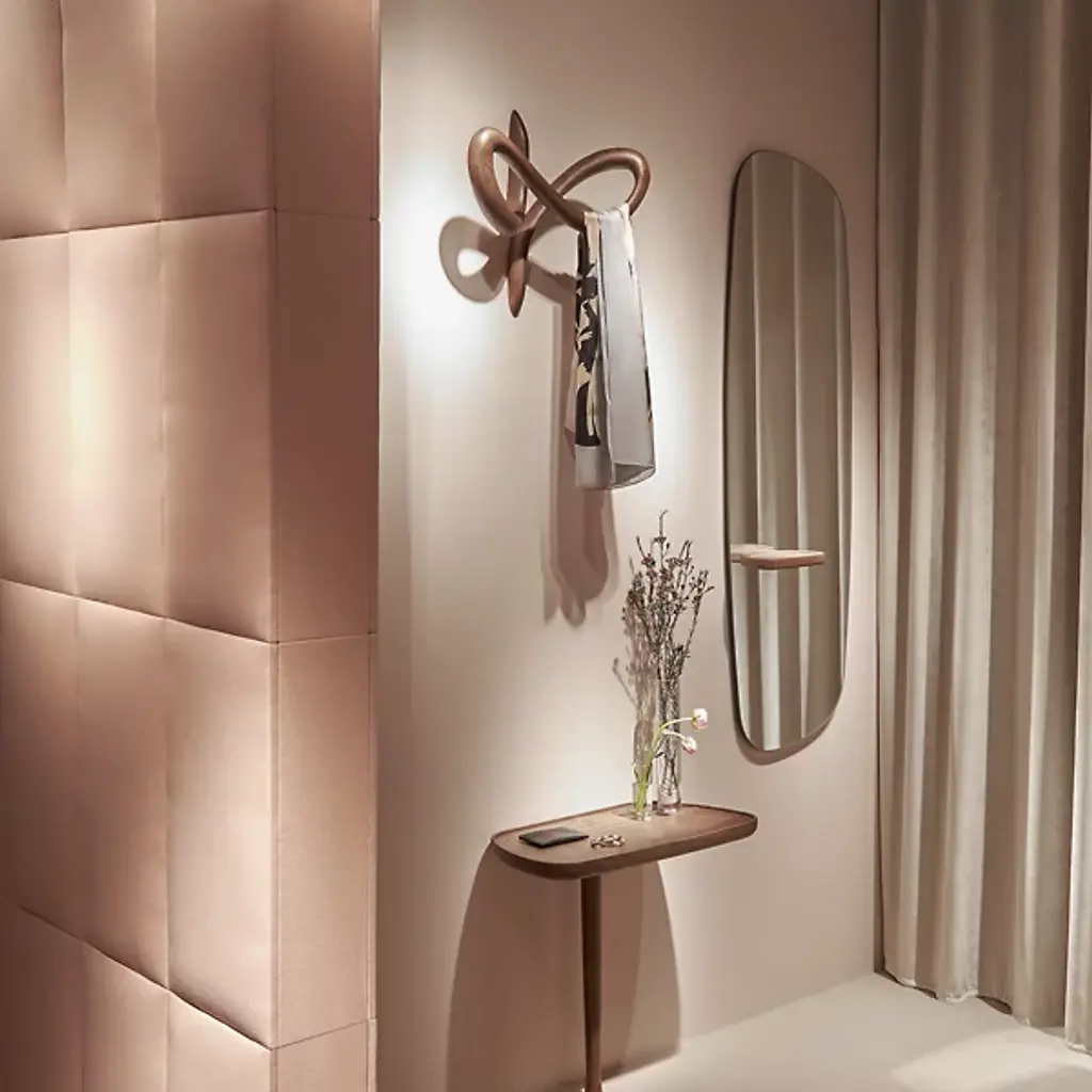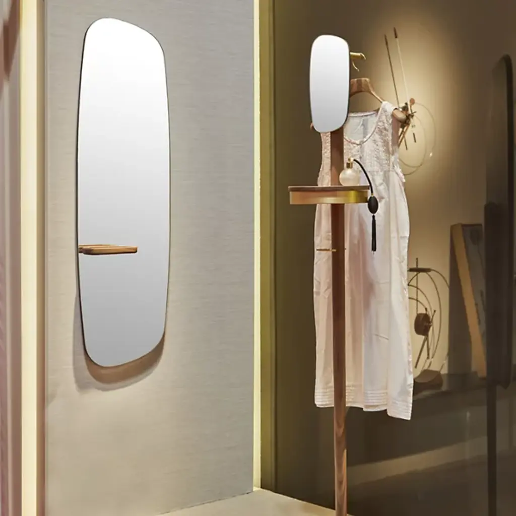 The Espejo Wall Mirror by Nomon brings a unique decorative element to any modern space. With a distinct design by Andres Martinez and Stefano Bigi, this piece boasts an elongated, asymmetrical shape and offset wooden shelf attached. This refined piece is ideal for adding an artistic and functional touch to a bedroom, bathroom, or entryway.