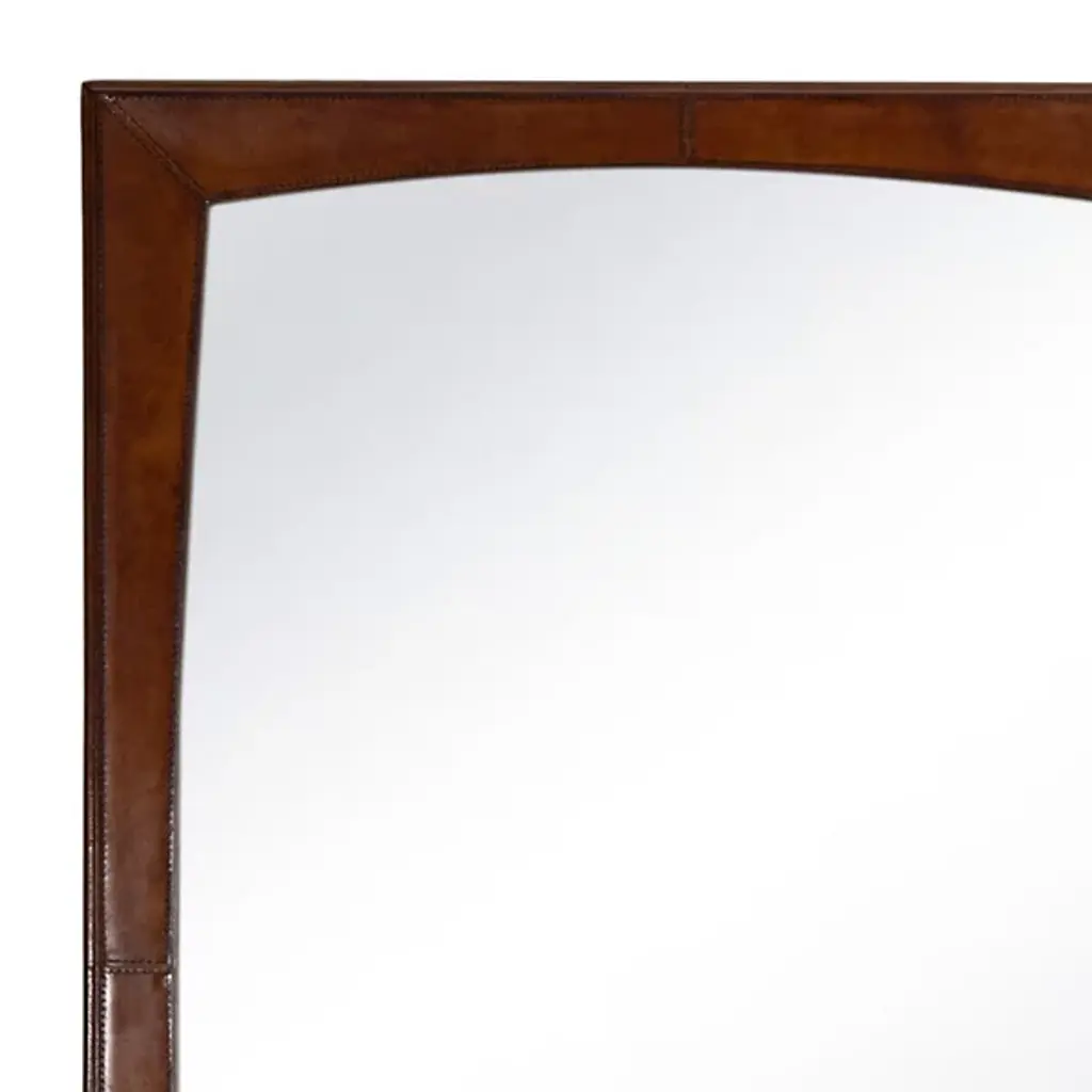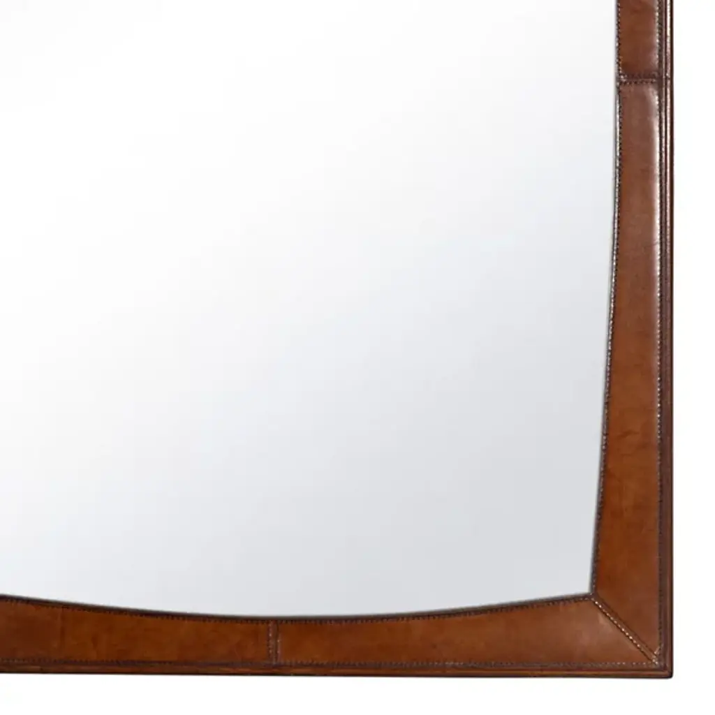 The Estaban Wall Mirror from Regina Andrew breaks traditional mirror design rules with its curved glass against a rectangular leather frame. Hand-wrapped leather sections create delicate variations in texture across the frame's surface. The arched mirror appears to push against its structured border, creating an unexpected visual dialogue between curved and straight lines. This mirror adapts to various spaces, from modern offices to traditional studies. The natural leather ages gracefully over time, developing character while maintaining its unique presence on any wall.