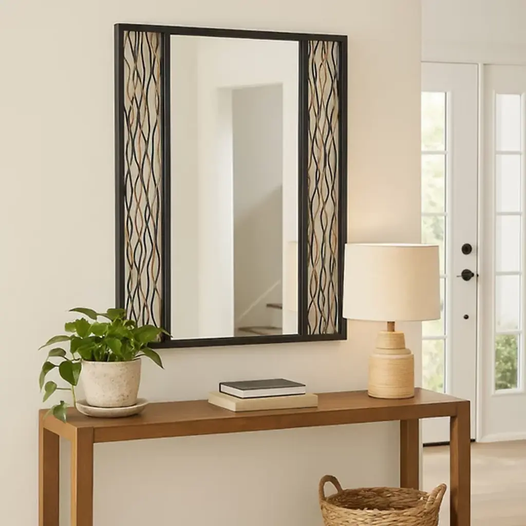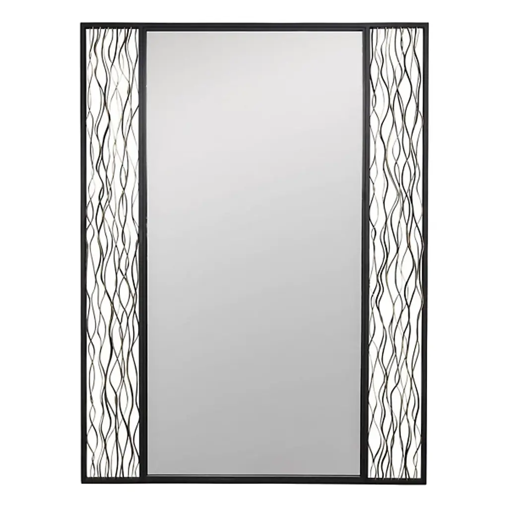 The Estela Rectangular Wall Mirror from Varaluz features sinuous framework at the sides, forming an elegant border that adds a refinement to your home décor. Designed in collaboration with the Smithsonian, it not only reflects artistry but also embodies a commitment to using sustainable materials. Crafted from repurposed galvanized steel and mirror, this mirror represents eco-conscious design. This mirror can be mounted vertically or horizontally.