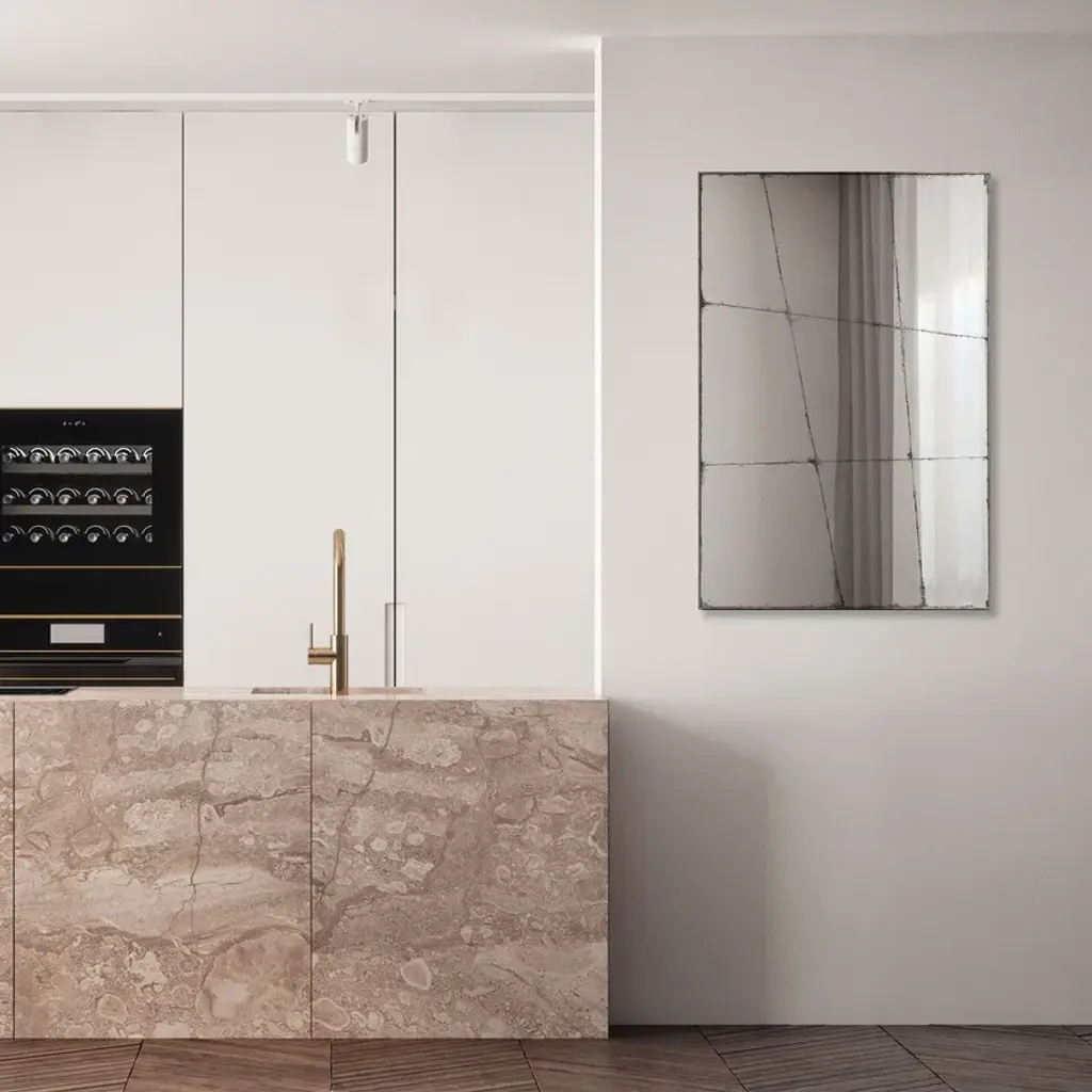 Estia is a decorative mirror with an innovative design.Asymmetrical lines printed with an antique effect visually divide the reflective surface, ensuring a surprise in the viewer. The textured metal frame completes the aesthetics of this mirror. It can be positioned either vertically or horizontally, making it a versatile and ideal choice for customising any setting according to the specific needs of the space.The AGAVE Art Mirrors collection was born from the desire to merge the art of painting with the functionality of mirrors into a unique and innovative piece of furniture: the Art Mirror. Launched in 2024 to celebrate the 15th anniversary of the AGAVE brand, this collection celebrates the excellence of contemporary art in interior design. These unique mirrors transform spaces into elegant and characteristic environments, perfect for design projects that require a distinctive touch. Discover how the AGAVE collection can enrich and enhance your projects with style and sophistication.