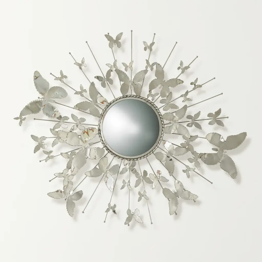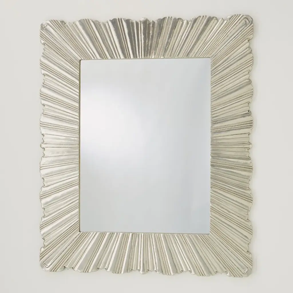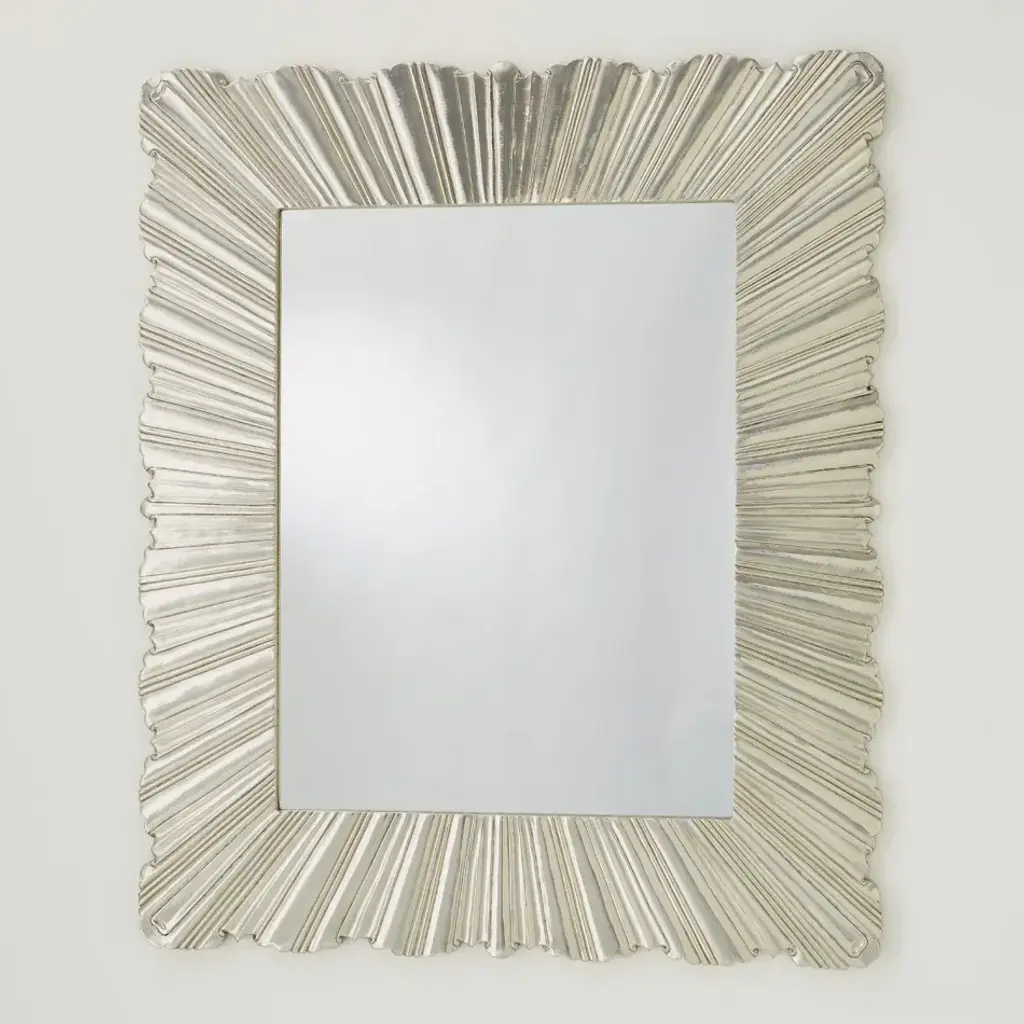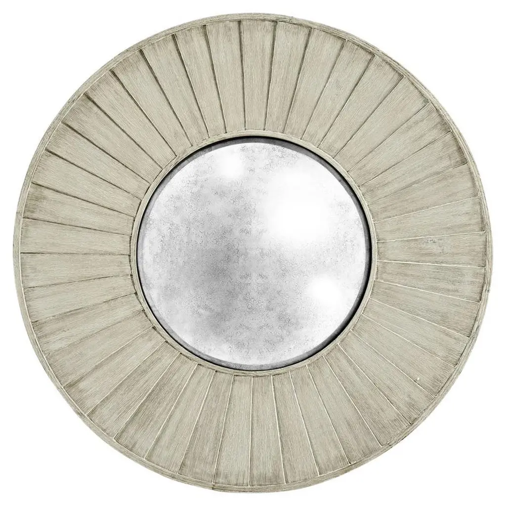 The Estriada family''s imaginative combination of cerused Mango wood and white metal gives the collection a signature feel. Hand-carved fluting is artfully applied to Mango wood frames surrounding a crisp mirrored glass center. Hang over a bathroom countertop or in a living room to add warmth and depth. Available in three options.