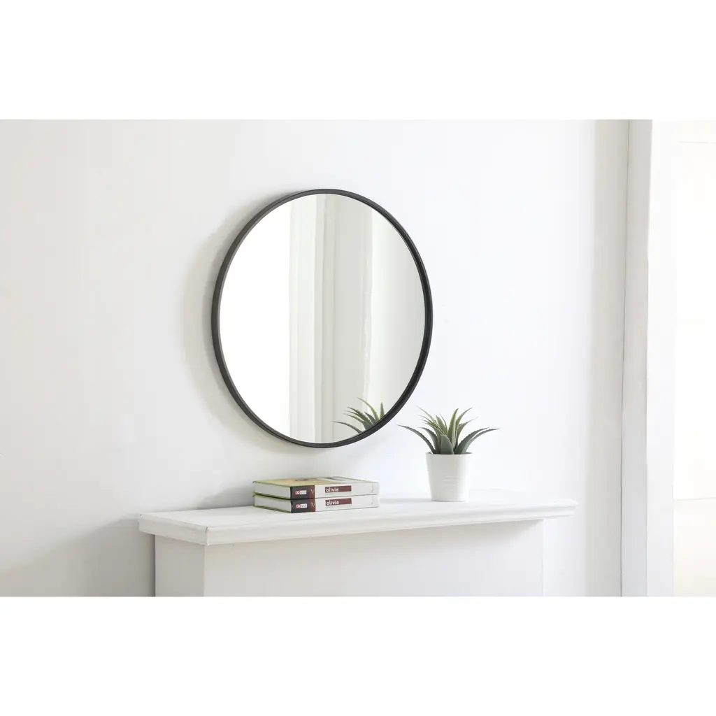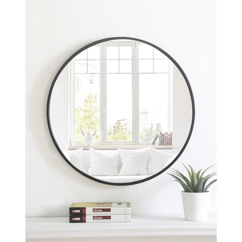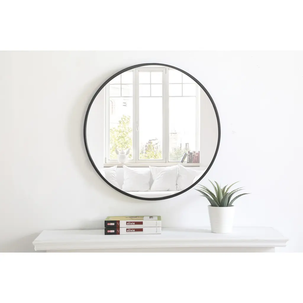 Enhance the appeal of your home or office with this contemporary mirror, featuring a black thin rounded metal edges in a deep profile, reflecting a minimalist's design and trendy styling. To ensure your home safety, we use a metal hanger bar that are securely welded to the back of the metal frame. We recommend using suitable heavy duty picture/mirror hooks, selecting the best type of fixing for the particular wall you wish to hang the mirror on, using the appropriate rawl plug if required. Measurement: D24.