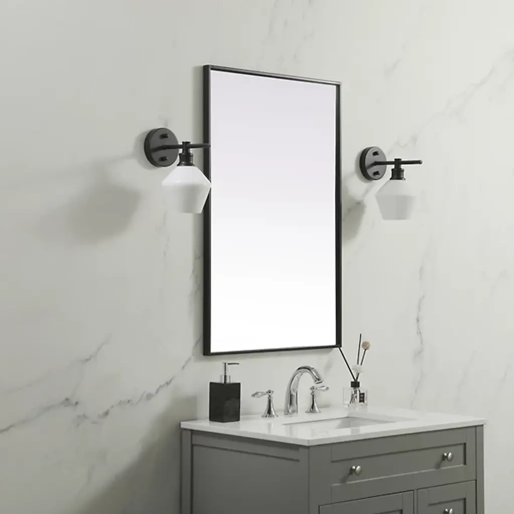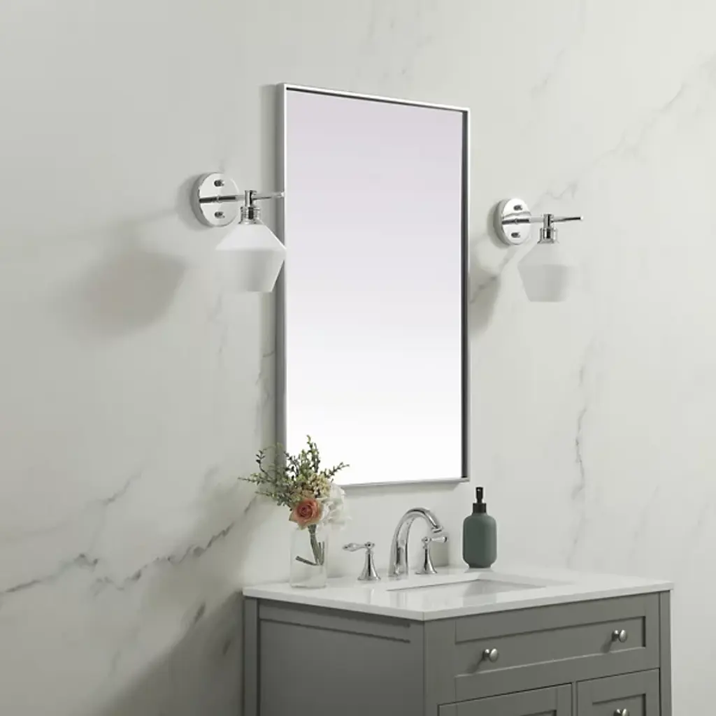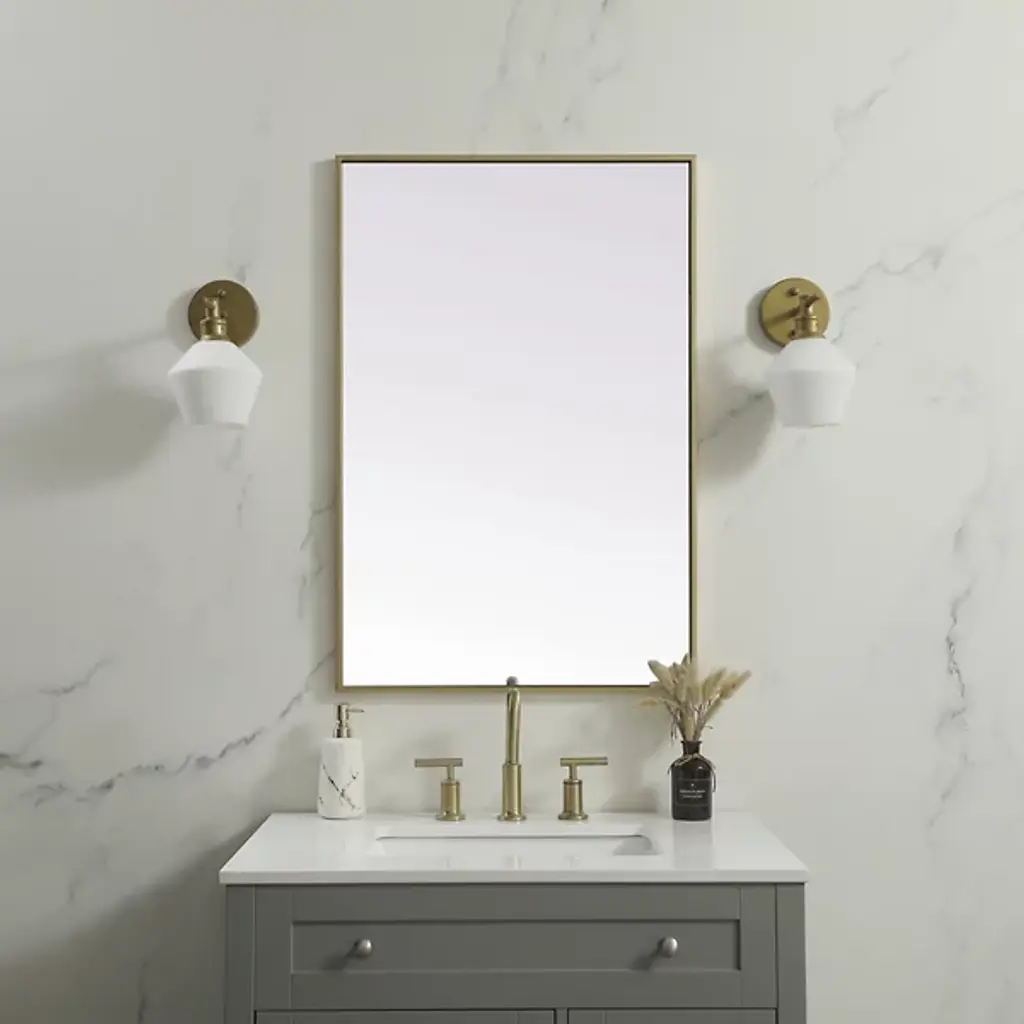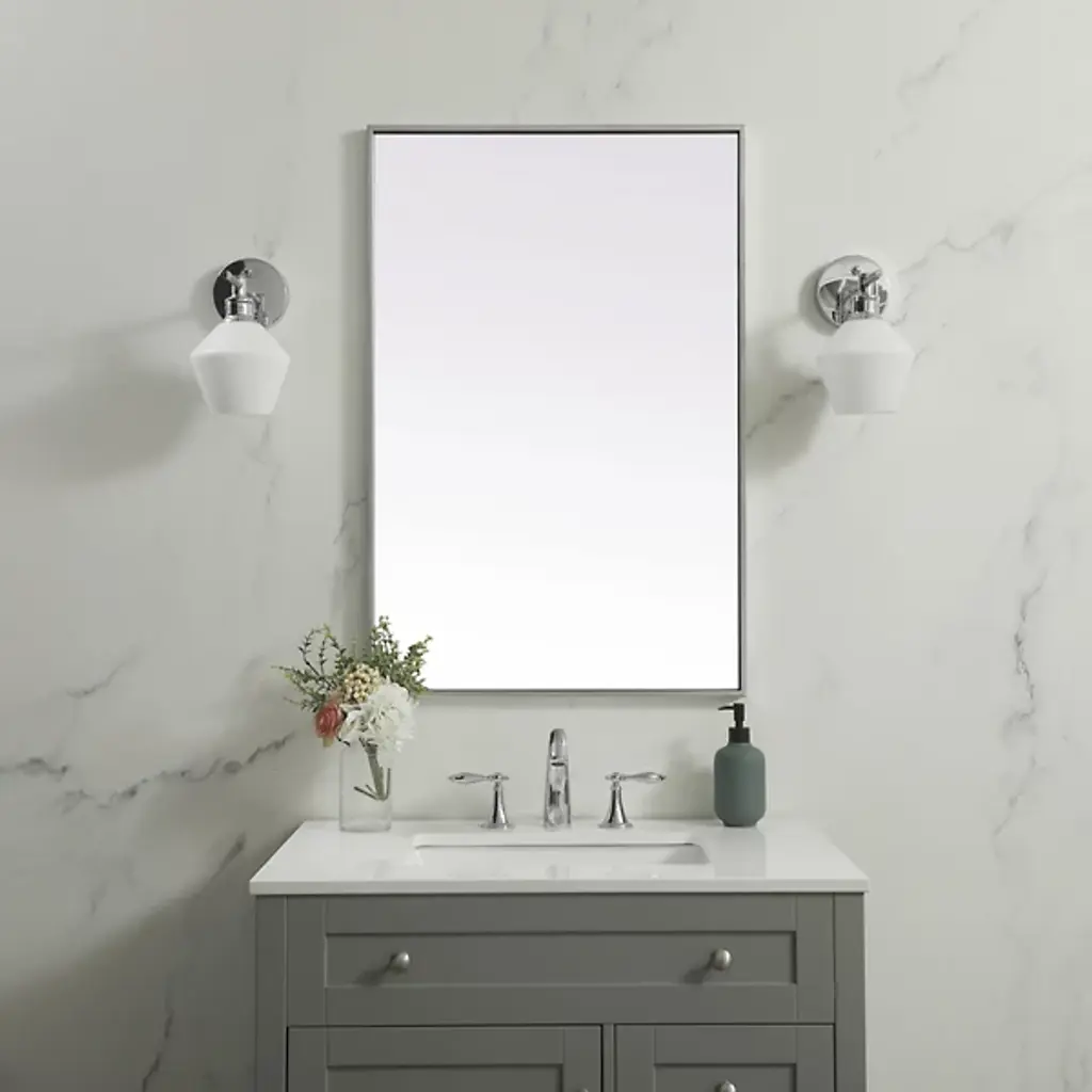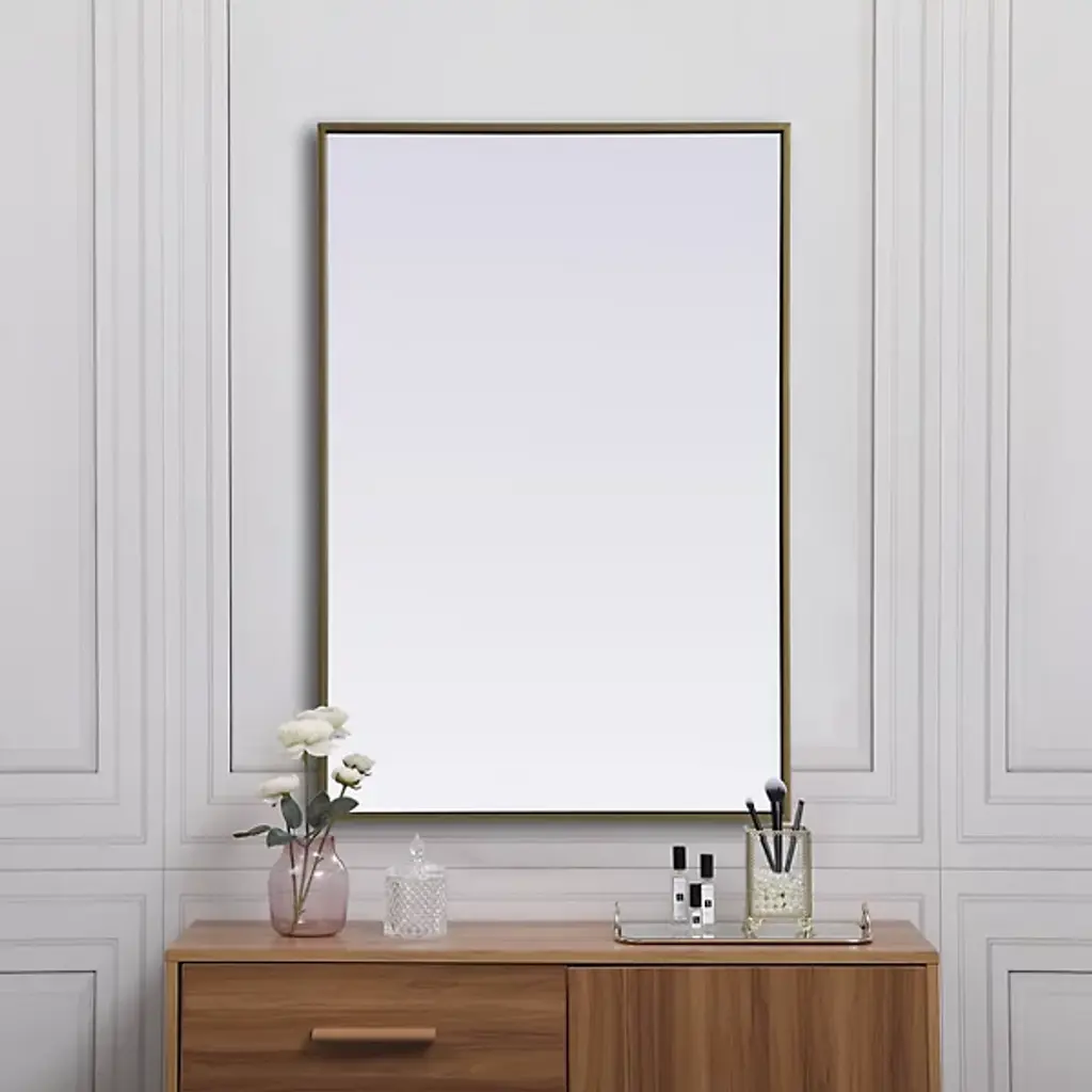 Elevate your home or office decor with the Eternity Rectangle Wall Mirror from Elegant Lighting. It showcases a thin, rounded metal edge in a deep profile for a minimalist, modern touch. A securely welded metal hanger bar on the back ensures safe installation. For optimal stability, use heavy-duty picture hooks and appropriate wall fixings.