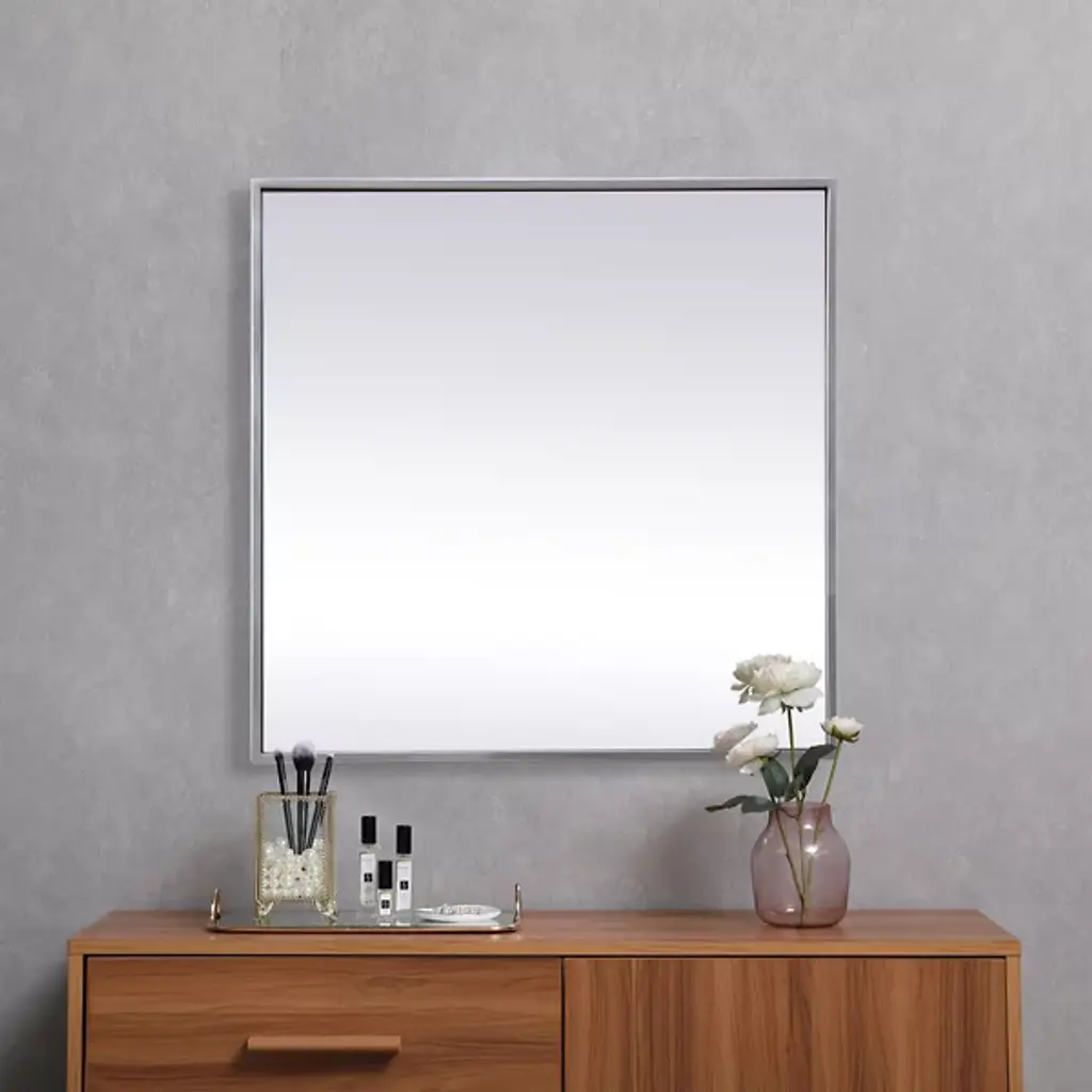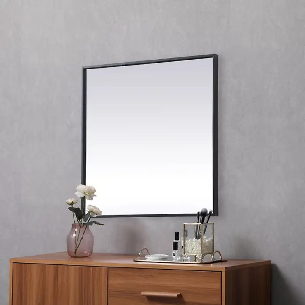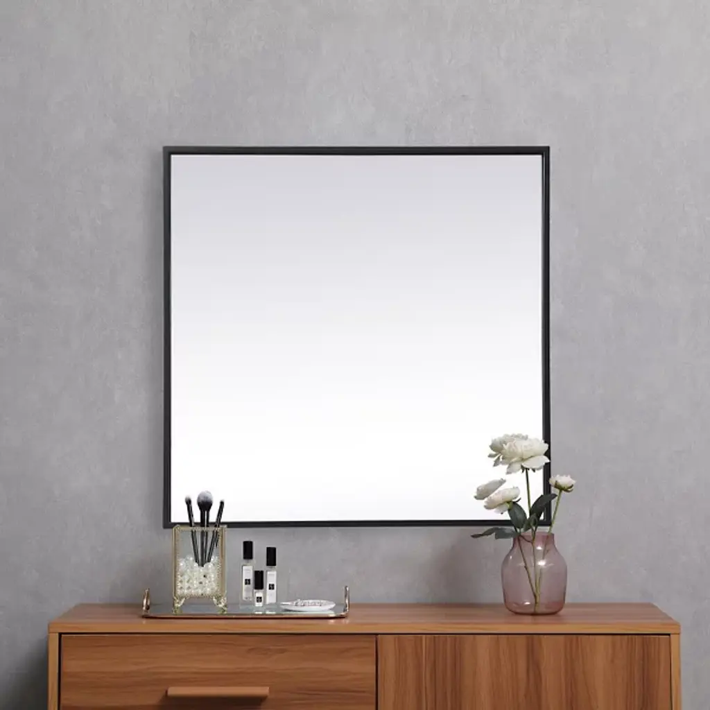 The Eternity Wall Mirror by Elegant Lighting brings refined style to any room with its square design and slim iron frame. This minimalist mirror enhances modern decor, creating a balanced, symmetrical look that’s versatile for wall mounting or tabletop display. Its crystal-clear glass provides a flawless reflection, becoming the fit focal point of any living space in which it is installed.