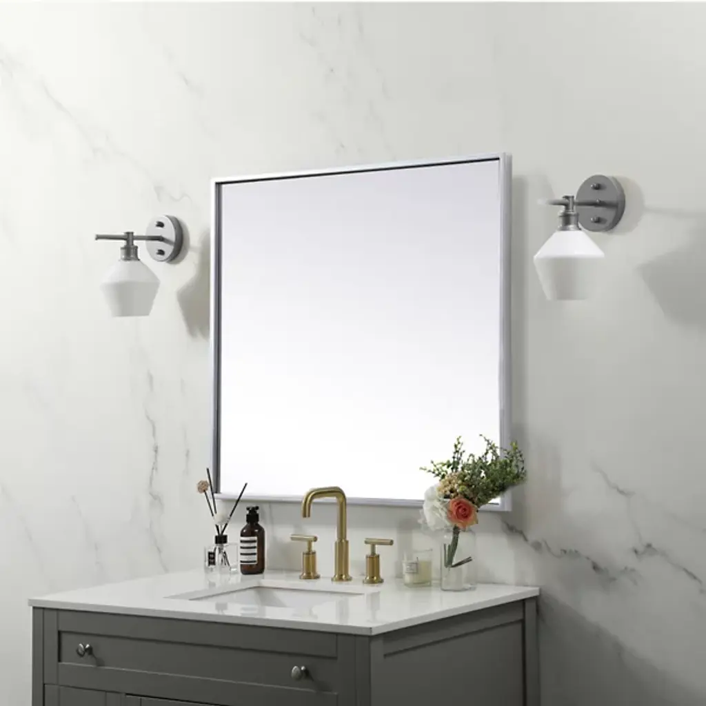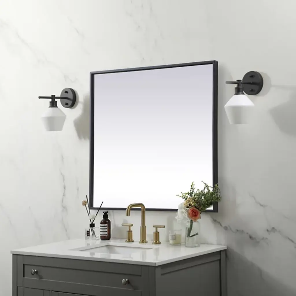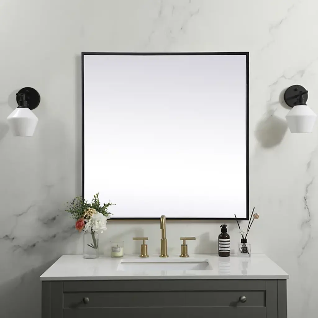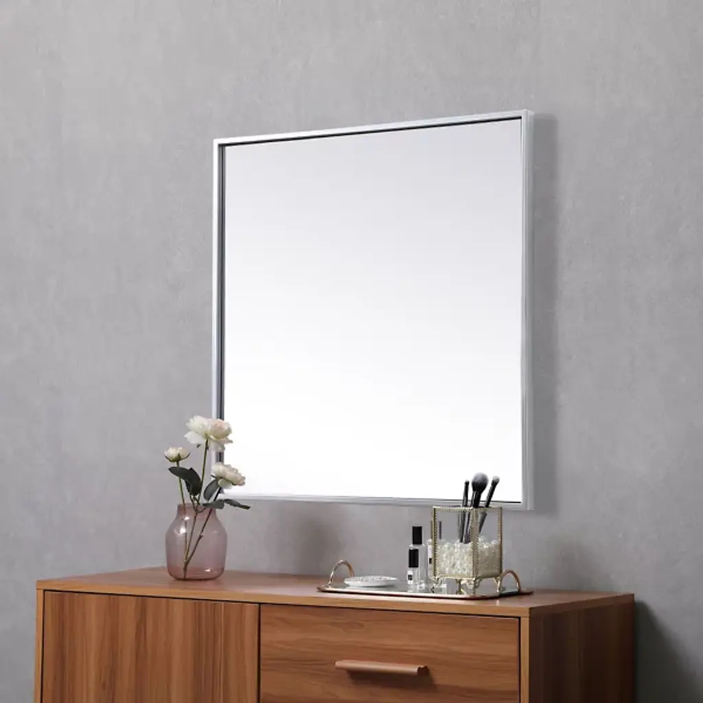 The Eternity Wall Mirror by Elegant Lighting brings refined style to any room with its square design and slim iron frame. This minimalist mirror enhances modern decor, creating a balanced, symmetrical look that’s versatile for wall mounting or tabletop display. Its crystal-clear glass provides a flawless reflection, becoming the fit focal point of any living space in which it is installed.