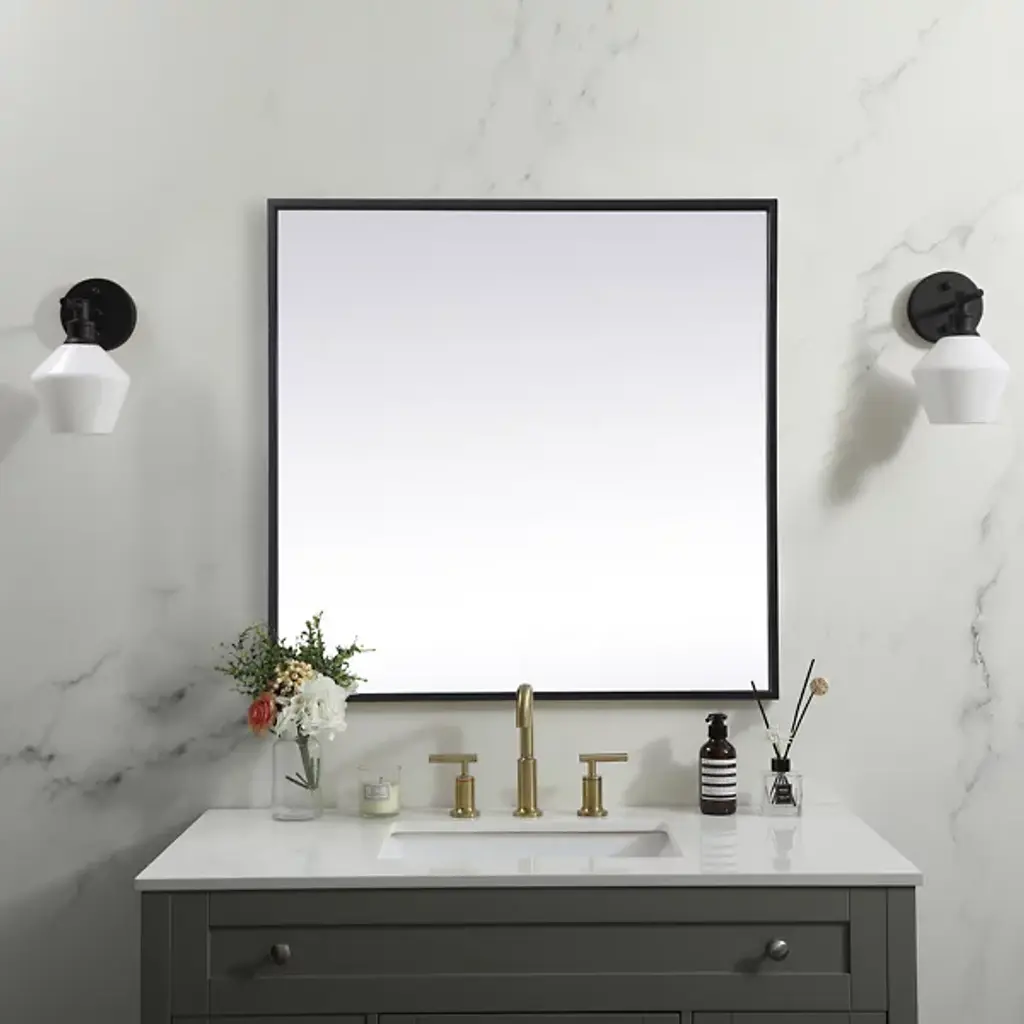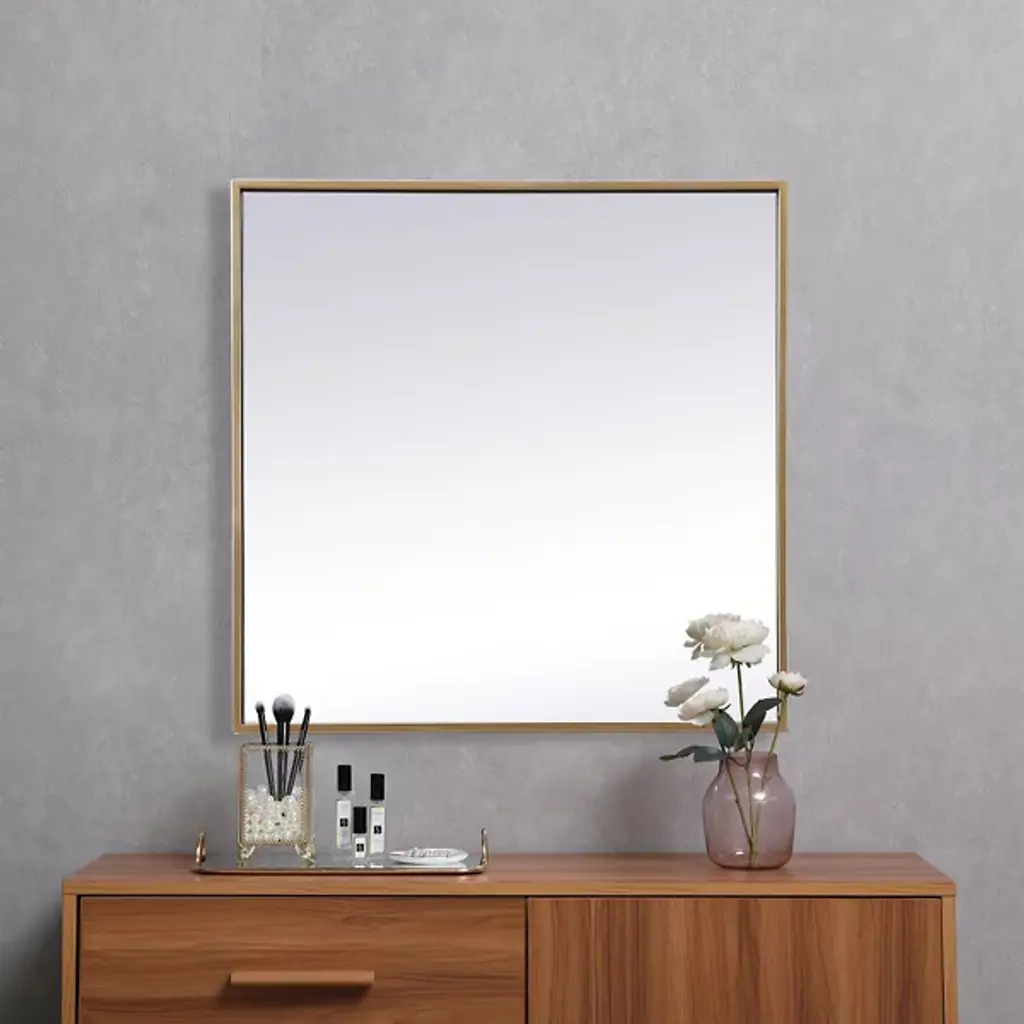 The Eternity Wall Mirror by Elegant Lighting brings refined style to any room with its square design and slim iron frame. This minimalist mirror enhances modern decor, creating a balanced, symmetrical look that’s versatile for wall mounting or tabletop display. Its crystal-clear glass provides a flawless reflection, becoming the fit focal point of any living space in which it is installed.
