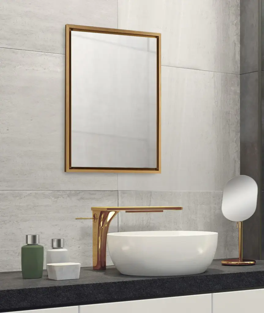 Evans Framed Floating Wall Mirror, Gold 18x24