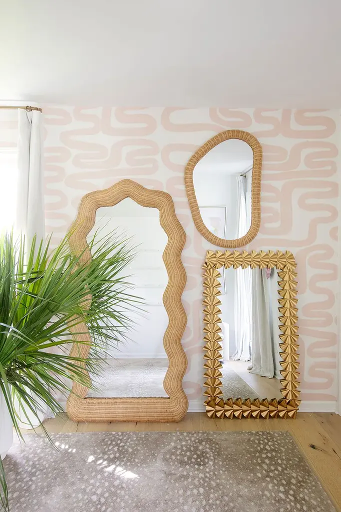 The Megan Molten x Cooper Classics Evelyn Mirror is a one-of-a-kind piece that combines the timeless elegance of rattan with a unique shape. Its natural material adds warmth and texture to any space, while its unconventional design makes a stylish statement. Bring a touch of sophistication to your home with this versatile and eye-catching mirror.