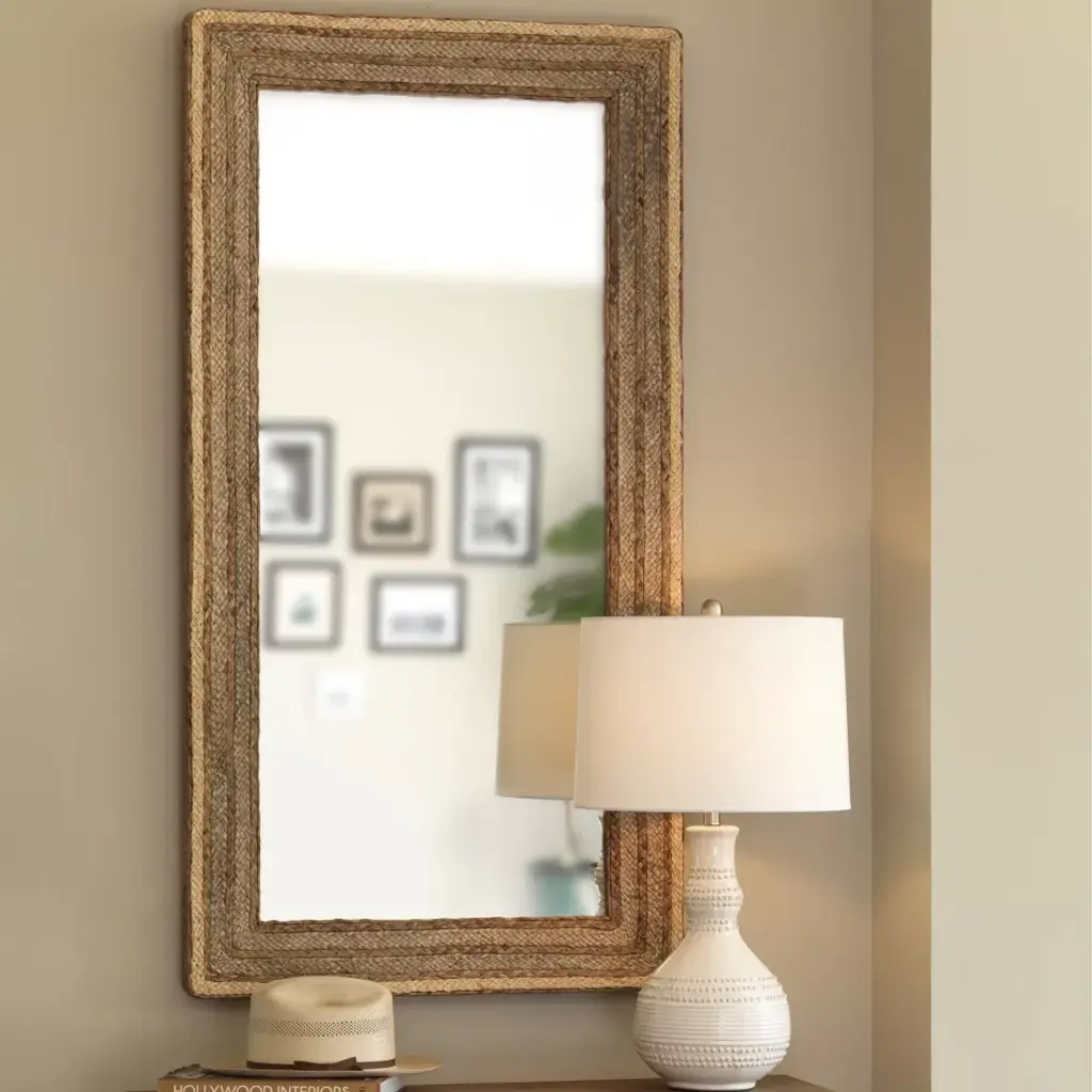 Evergreen Braided Seagrass Rectangle Mirror, Natural