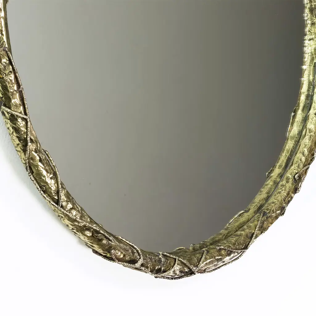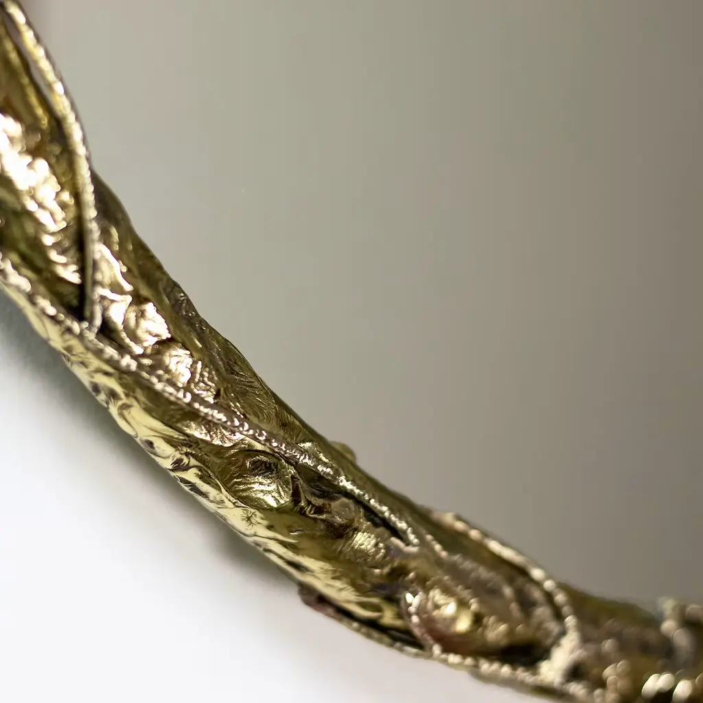 Inspired by the image of ivy growing on an ancient tree trunk, like an endless race to the sky, a circle with no beginning and no end, this magnificent wall mirror will make for a refined and artful addition to a contemporary interior. Handmade of brass, this piece is a one-off design and can only be reproduced in numbered pieces upon request. Please contact the Concierge for details.