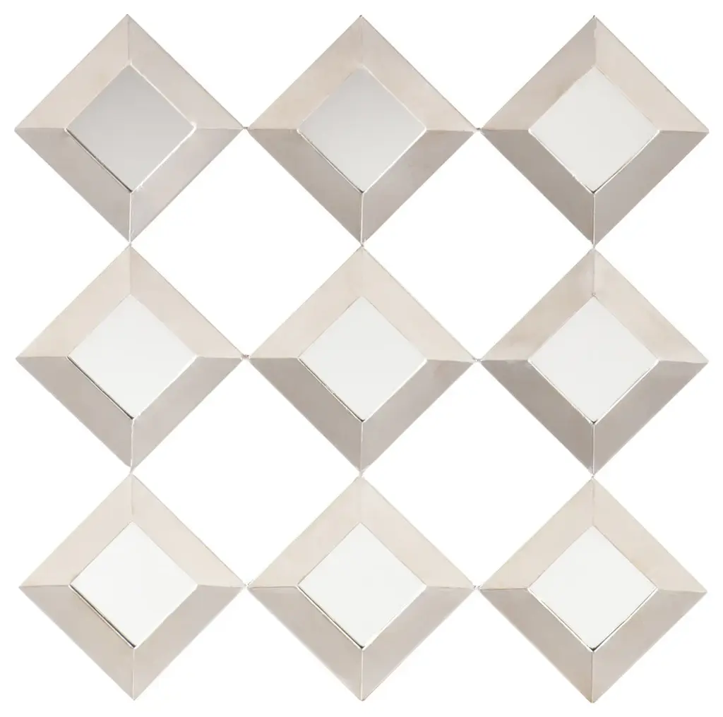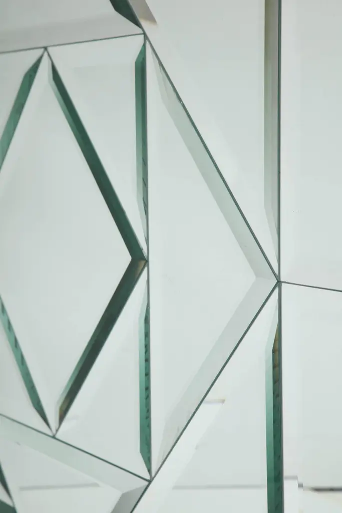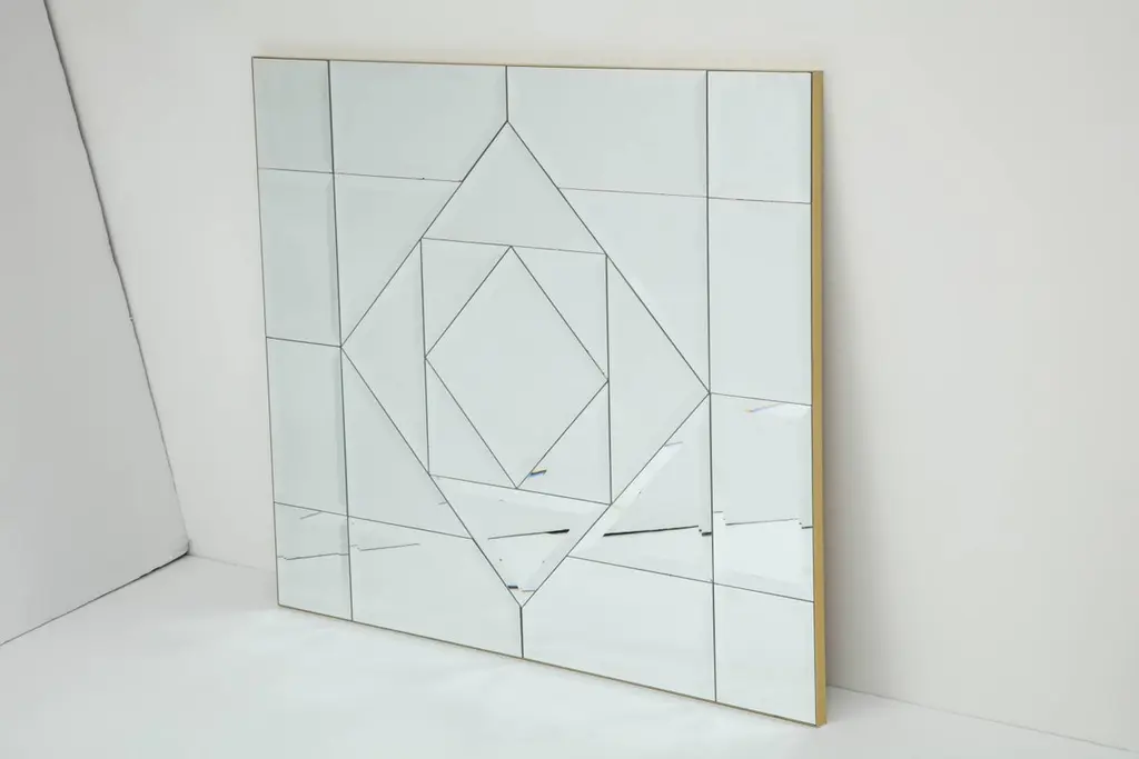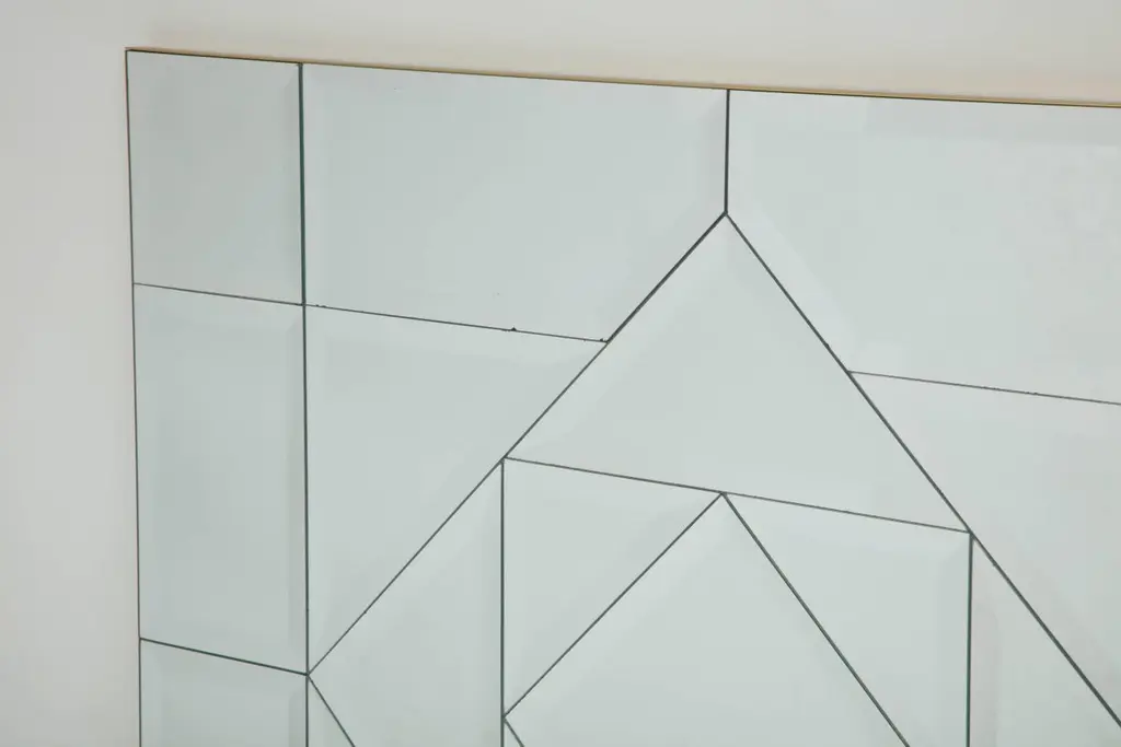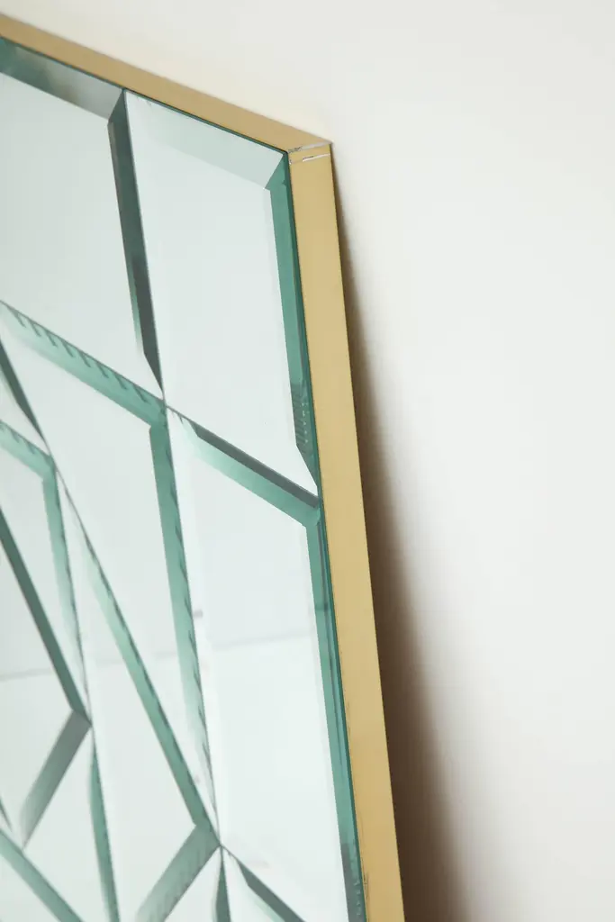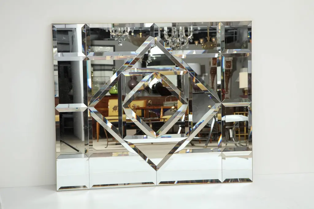 This Fabulous large designed mirror has been beautifully executed with bevelled and faceted edges and has been framed in a satin brass frame.The mirror comes complete with a hanging cleat and it can be hung horizontally or vertically.There is a pair available but they are priced individually.
