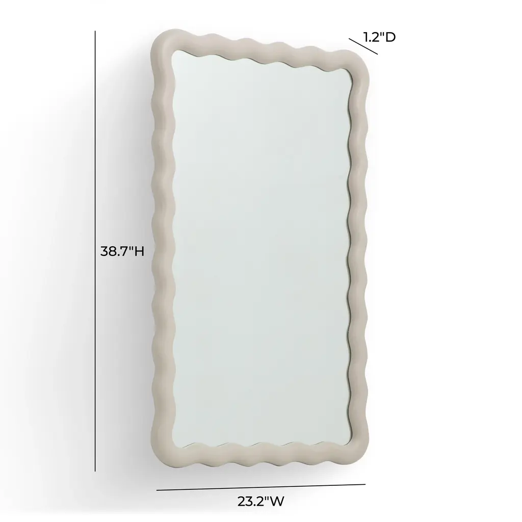 Make waves in any room with the Faire Cream Squiggle Mirror. Its sculptural, matte-finished frame and playful wavy border bring just the right amount of whimsy, whether hung vertically or horizontally.