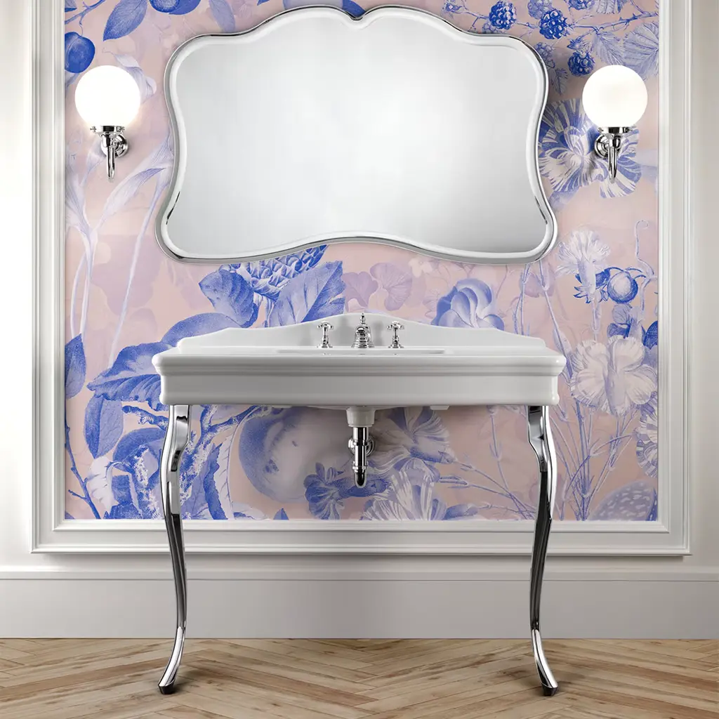The refined design of this shaped glass mirror recalls the atmospheres of the early 20th-century French cafès. The bevel edges that are typical of the curvilinear outline with a frame effect are also vintage-inspired. Please, contact the Concierge service for further information.