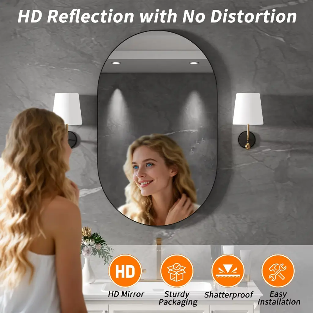 Elevate your daily routine with our modern black-framed vanity mirror. Its ultra-thin 0.02-inch aluminum frame delivers stunning luxury without bulk, fitting perfectly in any bathroom. Experience true clarity with distortion-free float glass that shows your real reflection. Installation is a breeze using the adhesive guide, securely mounting in minutes. This sleek, minimalist design adds high-end style and lasting quality to your space, making every morning feel effortlessly polished.