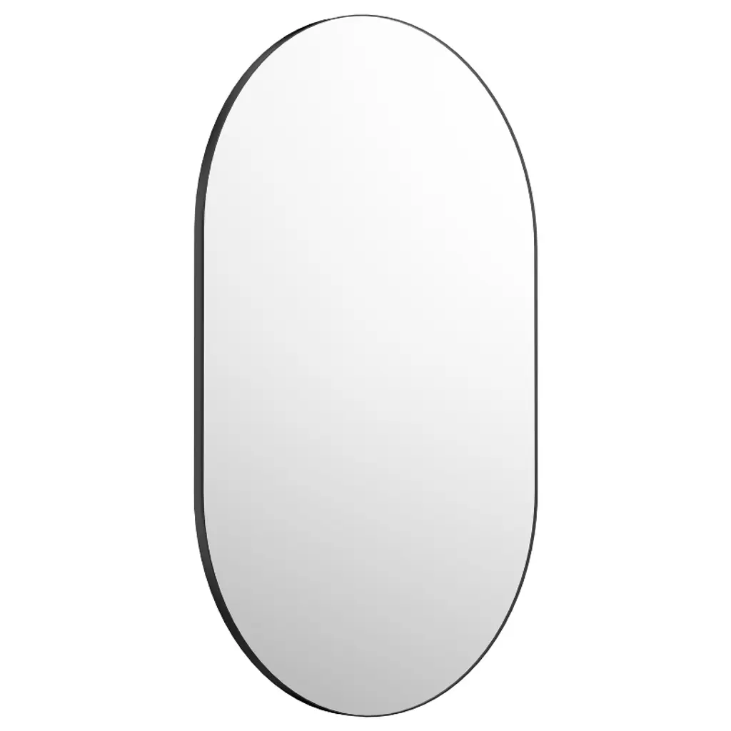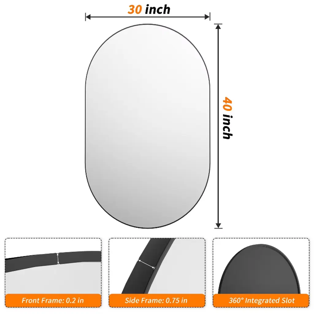 Famyyt 30 In. W X 40 In. H Oval Aluminum Framed Wall Bathroom Vanity Mirror In Glossy Black