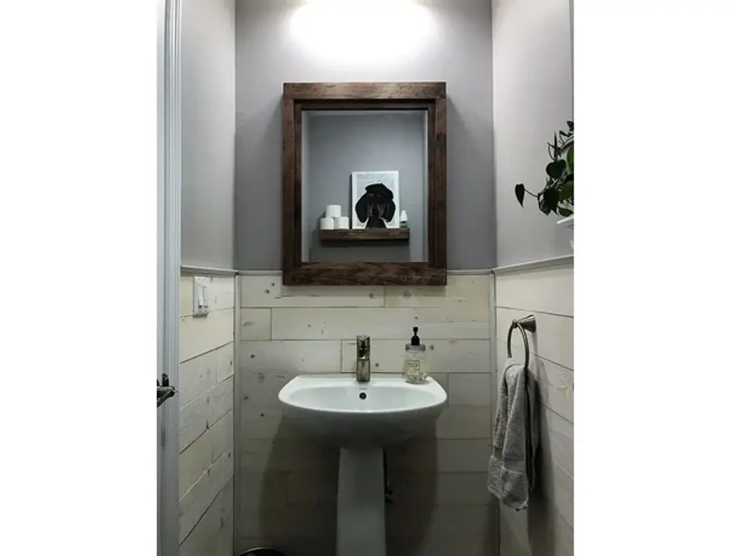 Our Farmhouse mirrors were inspired by my first home; the windows were framed out in a simple beautiful farmhouse style which I incorporated into the frame design of this mirror. Like most first time home owners our first house was a bit of fixer upper that had hidden charm. My wife and I spent many evenings refinishing each frame to bring new life to an old home so this design really holds a lot of memories for me.This design can be incorporated in a variety of decor styles it fits perfectly in a rustic cabin or can be that touch of warmth to modern a bathroom serving as a vanity mirror; it’s a simple yet tasteful addition.Our Farmhouse frames are made from Radita Pine boards the highest grade available in the market with unsurpassed finish quality. These boards have no knots, this surface allows for a beautiful finish, whether painting or staining. Radita Pine is an ECO- Friendly Product originally found in Monterey, California, Radiata Pine is today sourced from commercially grown tree farms. These forests are FSC certified, meaning they are managed on a completely renewable basis.Product Details:Available in 20 colors each frame is made to order, handmade in Warrington, PA Hand cut quality USA sourced 1/4 inch clear mirror glassAvailable in 6 sizes: 14"w x 16"h, 22w" x 24h", 24w" x 30h", 36"w x 30h", 42w" x 30”h" or 60”w x 30”hHeavy duty saw tooth are attached to framed mirror sizes 22”x24”, 24"x30", 30"x36" and 30"x42" Z-Bar Hanging system are attached for 60" x 30" size