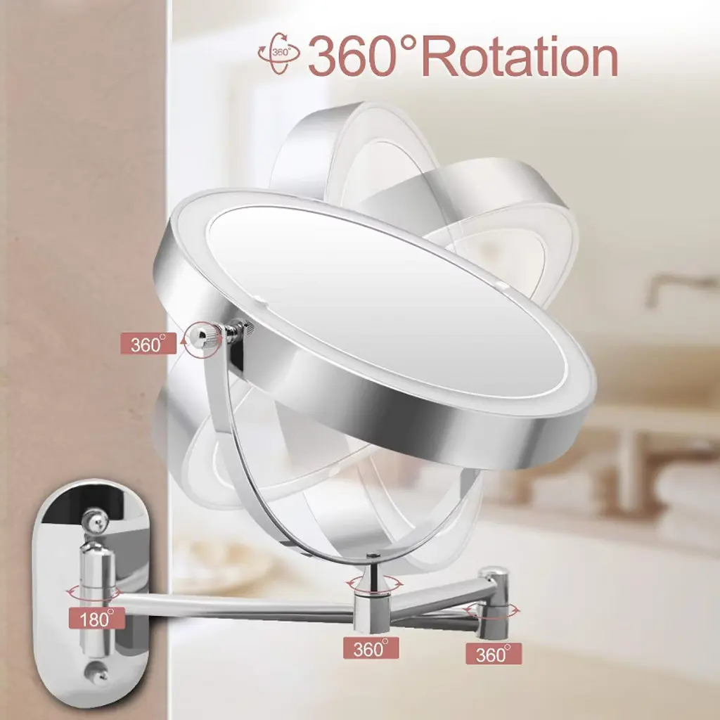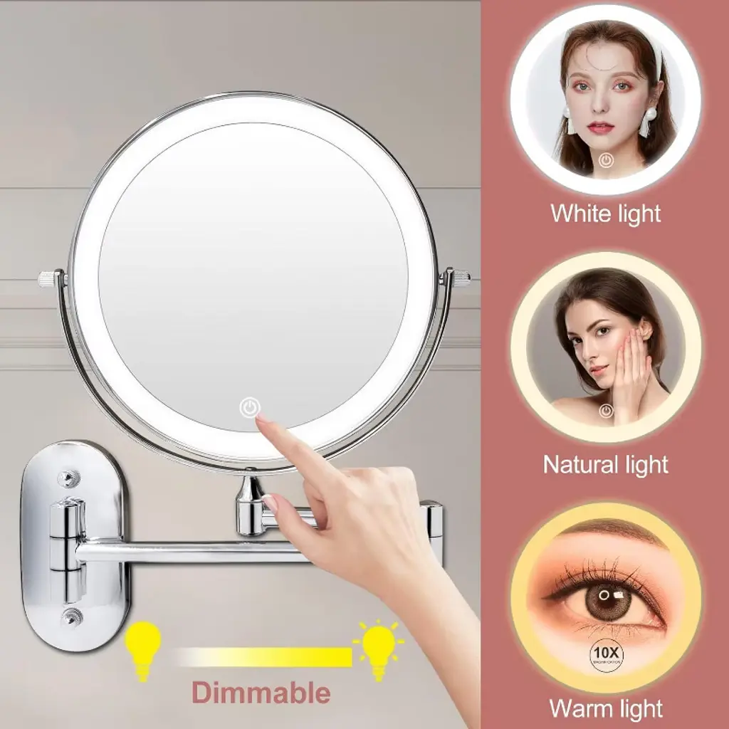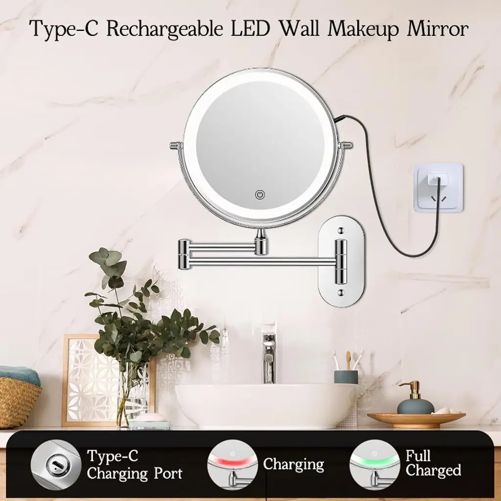 Upgrade your daily routine with the Rechargeable Wall Mounted Makeup Mirror, featuring a built-in 2000mAh battery for cordless convenience. This double-sided mirror offers 1X and 10X magnification for everything from full-face makeup to detailed grooming. Choose from three lighting modes—warm, natural, and white—using the touch sensor, and adjust brightness with a simple press. The 17.4-inch extendable arm and 360° swivel let you find the perfect angle, then fold it back to save space. Made of rust-resistant stainless steel, it’s ideal for bathrooms or bedrooms. Easy to install and stylishly designed, it’s the perfect blend of function and elegance.