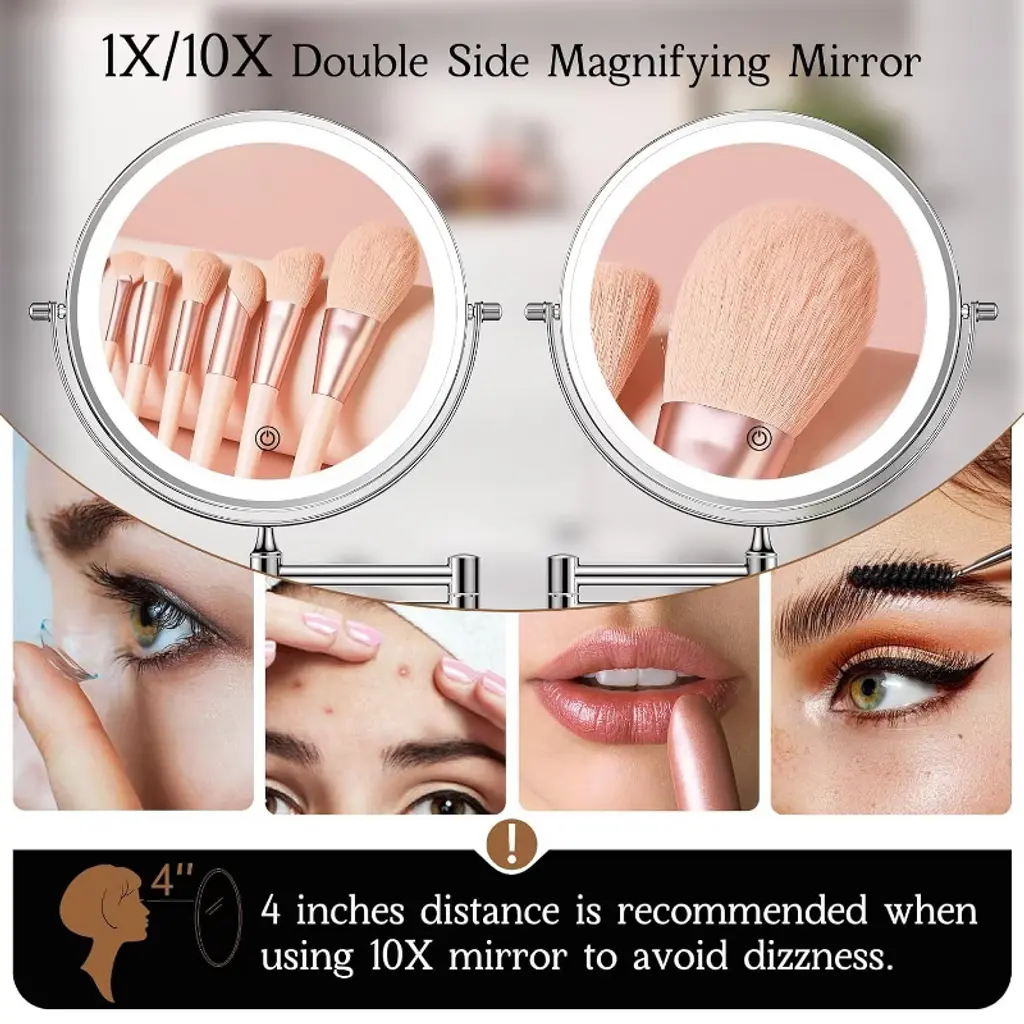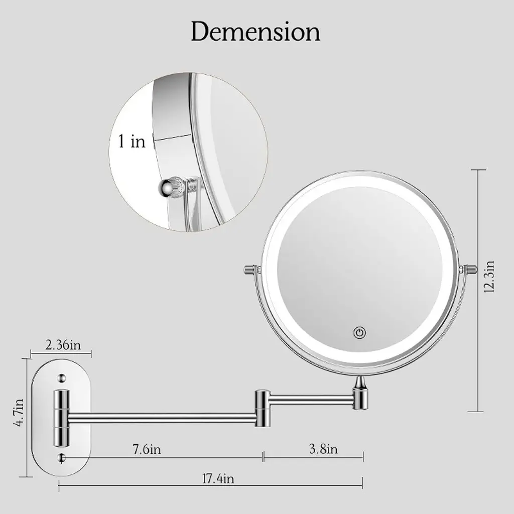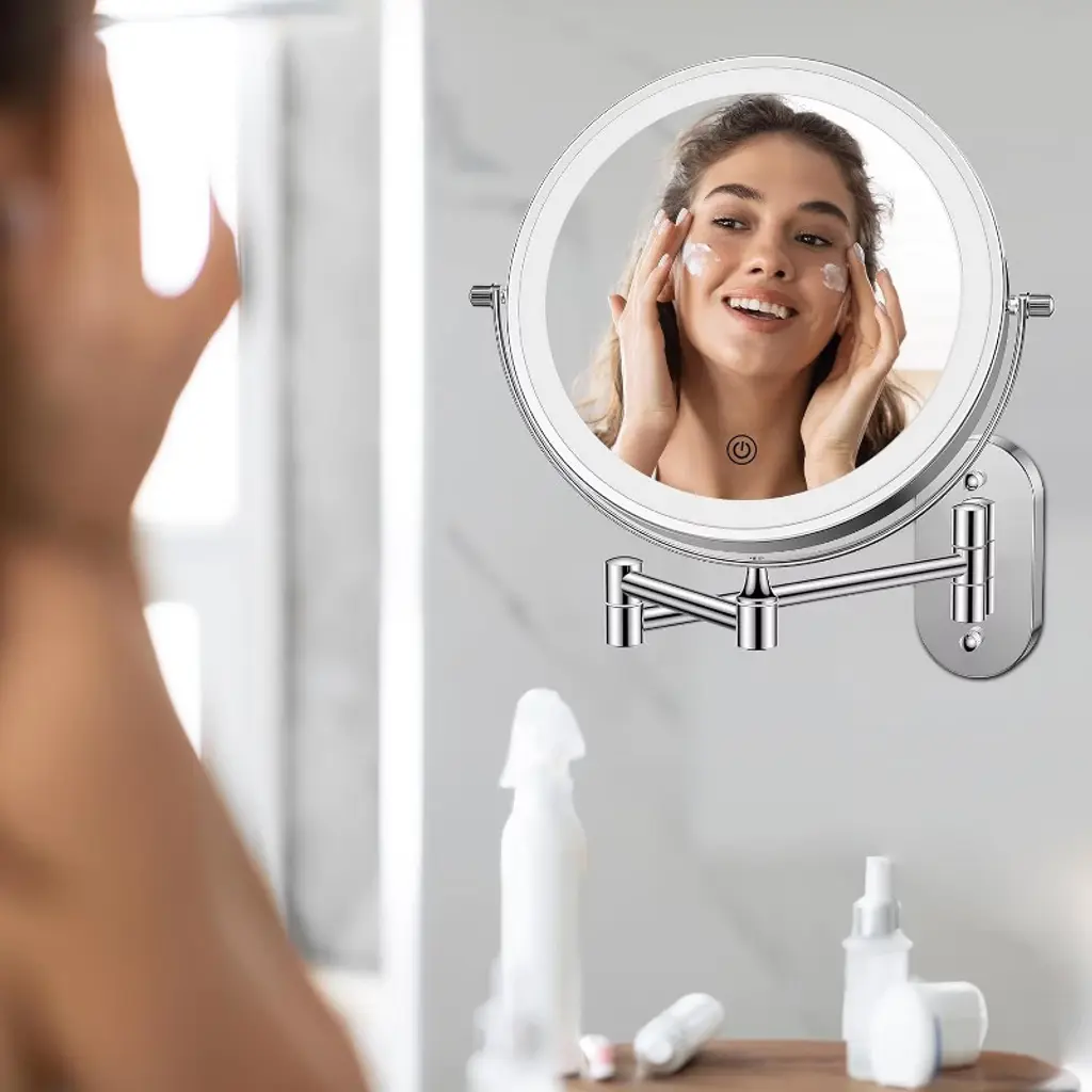 Upgrade your daily routine with the Rechargeable Wall Mounted Makeup Mirror, featuring a built-in 2000mAh battery for cordless convenience. This double-sided mirror offers 1X and 10X magnification for everything from full-face makeup to detailed grooming. Choose from three lighting modes—warm, natural, and white—using the touch sensor, and adjust brightness with a simple press. The 17.4-inch extendable arm and 360° swivel let you find the perfect angle, then fold it back to save space. Made of rust-resistant stainless steel, it’s ideal for bathrooms or bedrooms. Easy to install and stylishly designed, it’s the perfect blend of function and elegance.