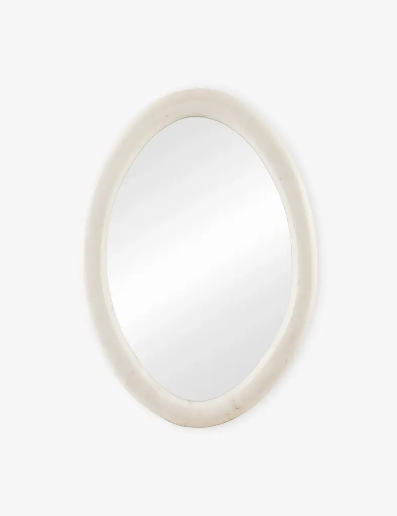 The Fedde mirror offers a sculptural take on a classic oval silhouette. A solid marble frame surrounds the glass with soft curves and natural veining that bring natural drama to the design. Style this decorative mirror in a powder room, hallway, or living space for a refined accent that feels grounding yet elevated.