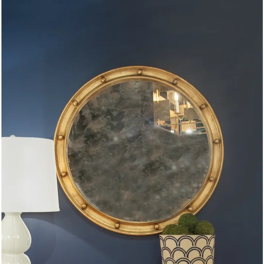 Their large round antique mirror is the essential accent for your entry hall or bathroom vanity. Its Federal style frame is hand finished.