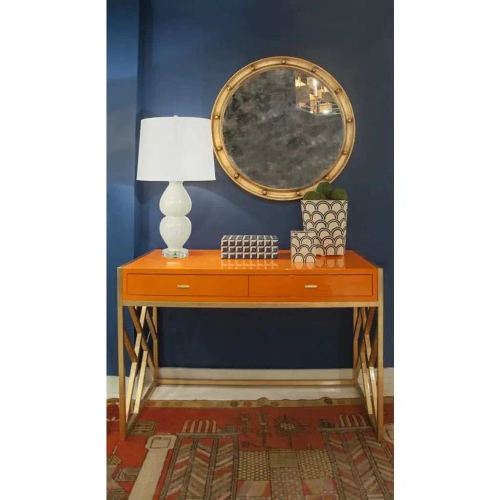 Their large round antique mirror is the essential accent for your entry hall or bathroom vanity. Its Federal style frame is hand finished.