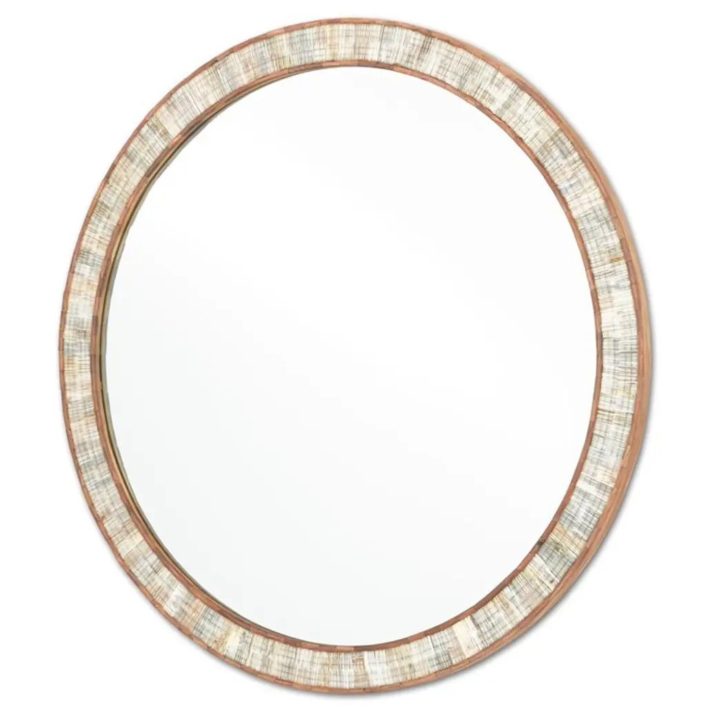 Felice Modern Classic Natural Bone Brown Wood Round Wall Mirror