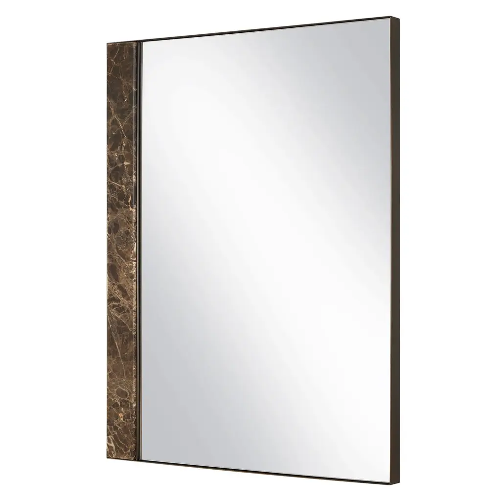 The Felicia Mirror is a masterpiece of elegance and sophistication, a true testament to the art of design. Imagine a mirror that not only reflects your image but also enhances the beauty of your space with its luxurious presence. One side of this exquisite mirror is adorned with a stunning marble slab, a rich and opulent touch that speaks of timeless beauty. The rest of the mirror is gracefully encased in a sleek, thin iron frame, exuding a subtle yet striking allure. This harmonious blend of materials creates a captivating contrast, making the Felicia Mirror a perfect centerpiece for any room. Let it be a reflection of your refined taste and an invitation to admire the beauty that surrounds you.