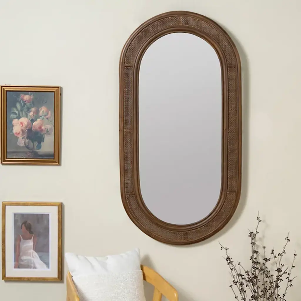 The Felize Wall Mirror from Cooper Classics blends rustic modern charm with natural elegance. Its rattan frame, finished in a rich walnut tone, adds warmth and texture to any space. Perfect for enhancing light and depth, this versatile mirror is a stylish focal point that complements a variety of decor styles.