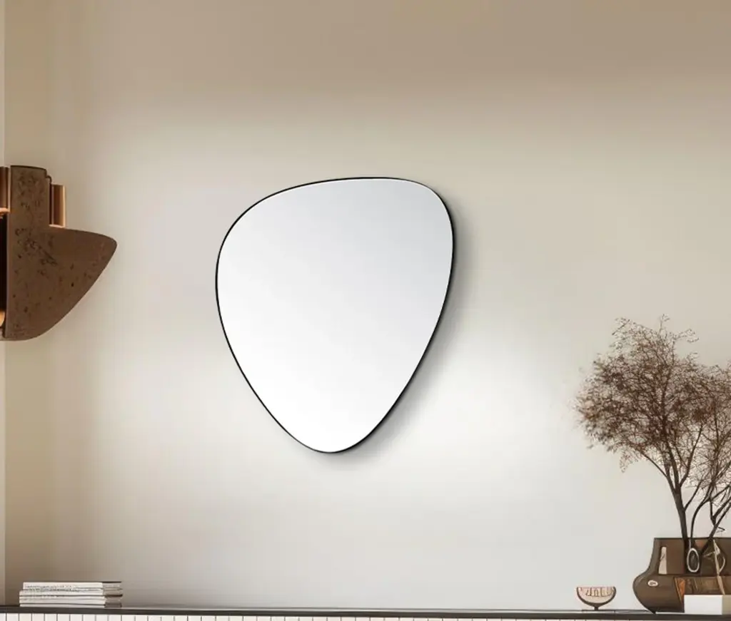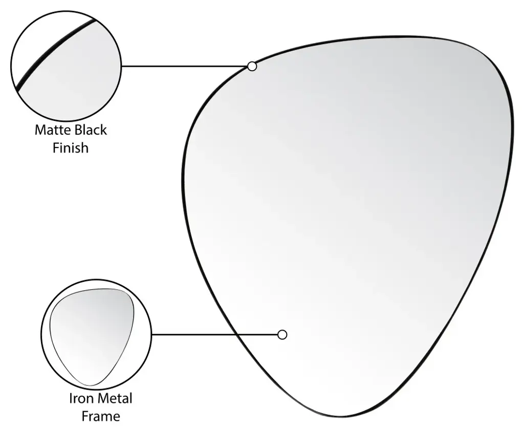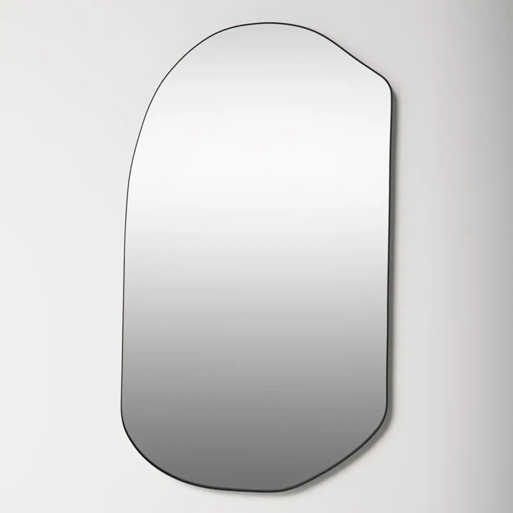 Restyle your walls with the Finch Mirror, a striking piece featuring a matte black finish and a unique pebble-shaped iron metal frame. This mirror''s contemporary design marries sleek modernity with organic forms, creating a captivating focal point in any room. Whether hung in your entryway, living room, or bedroom, this mirror adds a touch of sophistication and artistic flair, effortlessly enhancing your space with its distinctive shape and refined finish.Overall Product Dimensions: 17" W x 1.5" D x 24" HMatte Black FinishIron Metal FramePebble ShapeContemporary Design