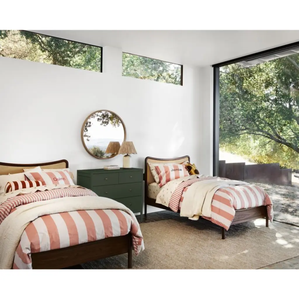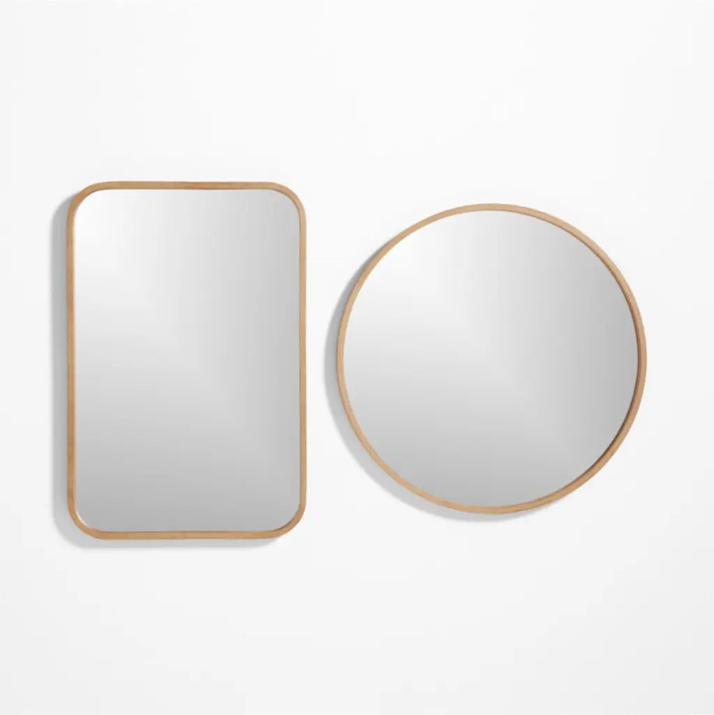 Edged with a slim band of wood, our Finn wall mirrors make a modern, minimalist design statement in the nursery or kid's room. The warm oak finish of the clean-lined, understated mirror blends seamlessly with a variety of our bedroom and nursery furniture collections.