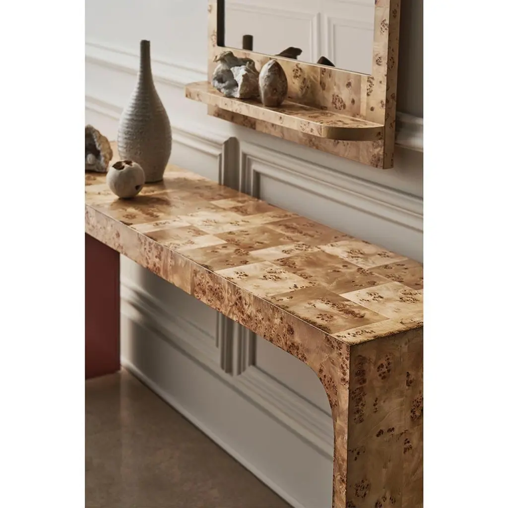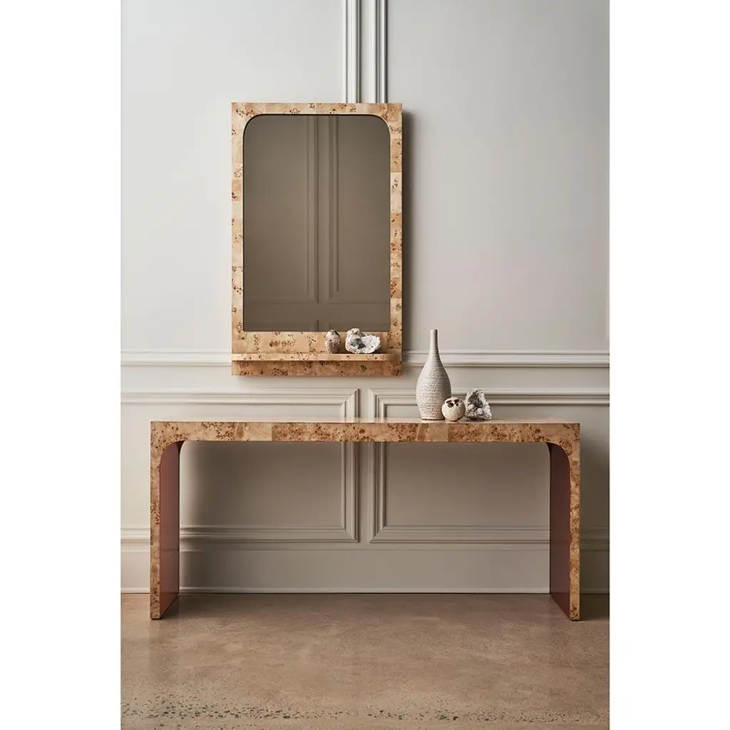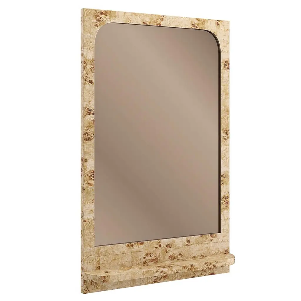 Fiorenne Modern Classic Brown Burl Wood Frame Wall Mirror