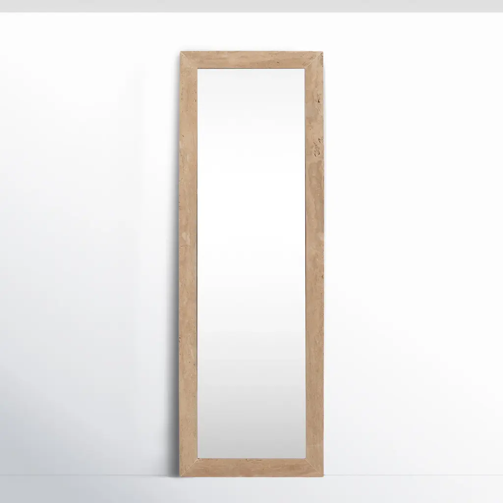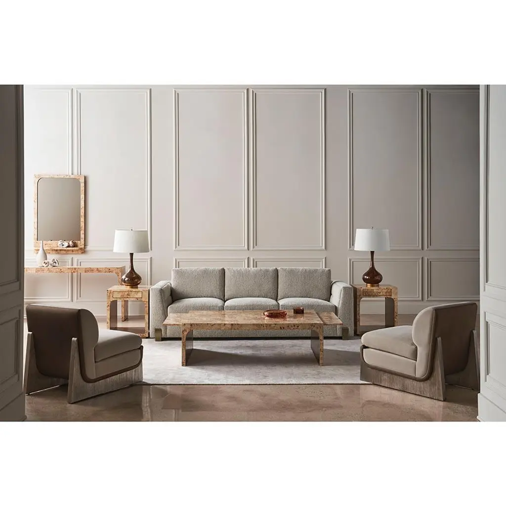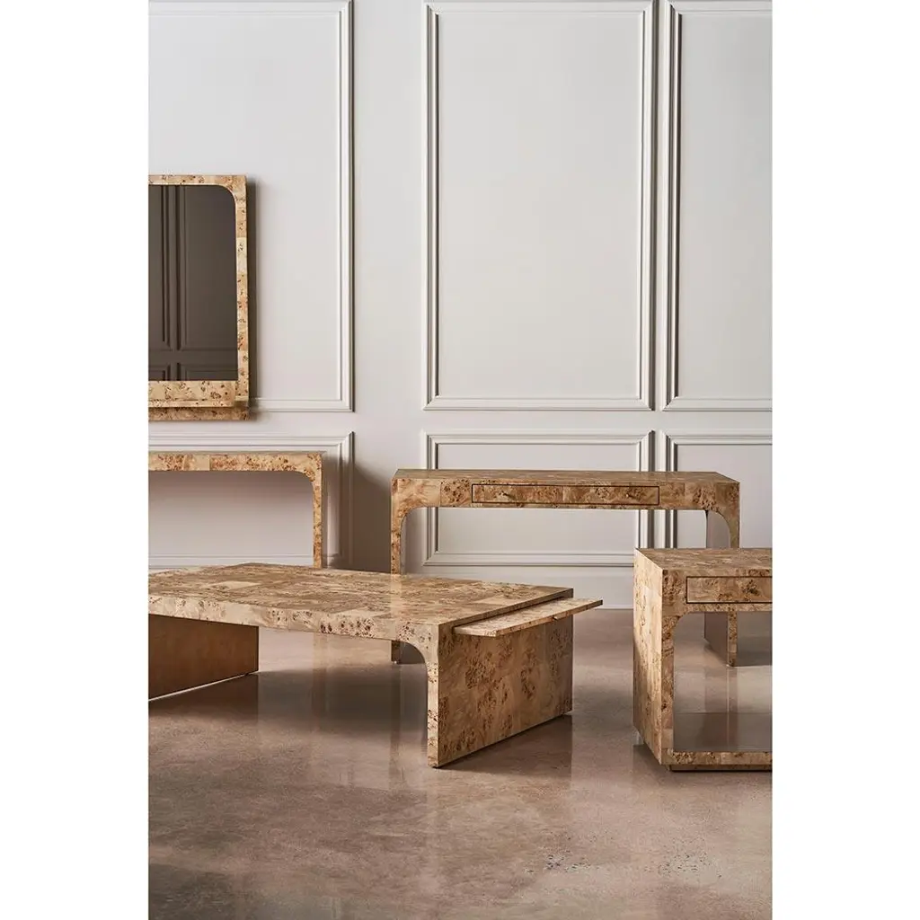 Fiorenne Modern Classic Brown Burl Wood Frame Wall Mirror