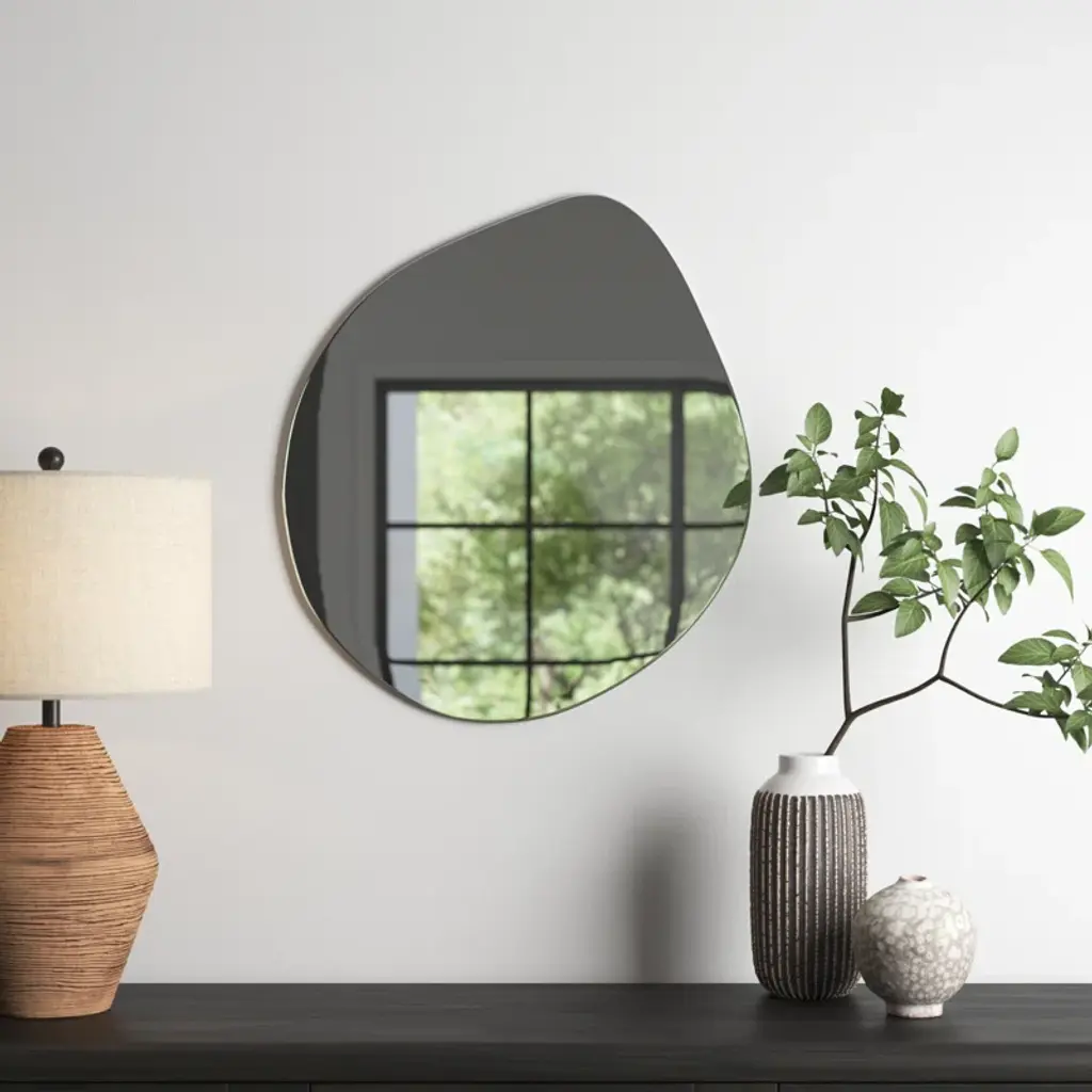 A harmonious mix playfulness, character and expression, this mirror is both a literal and figurative reflection of who we areperfect in our imperfection. Closely resembling a drop of water, this contemporary mirror is an ode to wabi-sabi, adding originality and depth to any room: embrace asymmetry, simplicity, and modesty with this beautifully offbeat wall mirror.