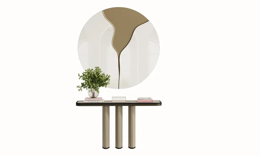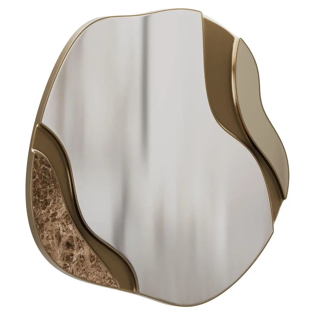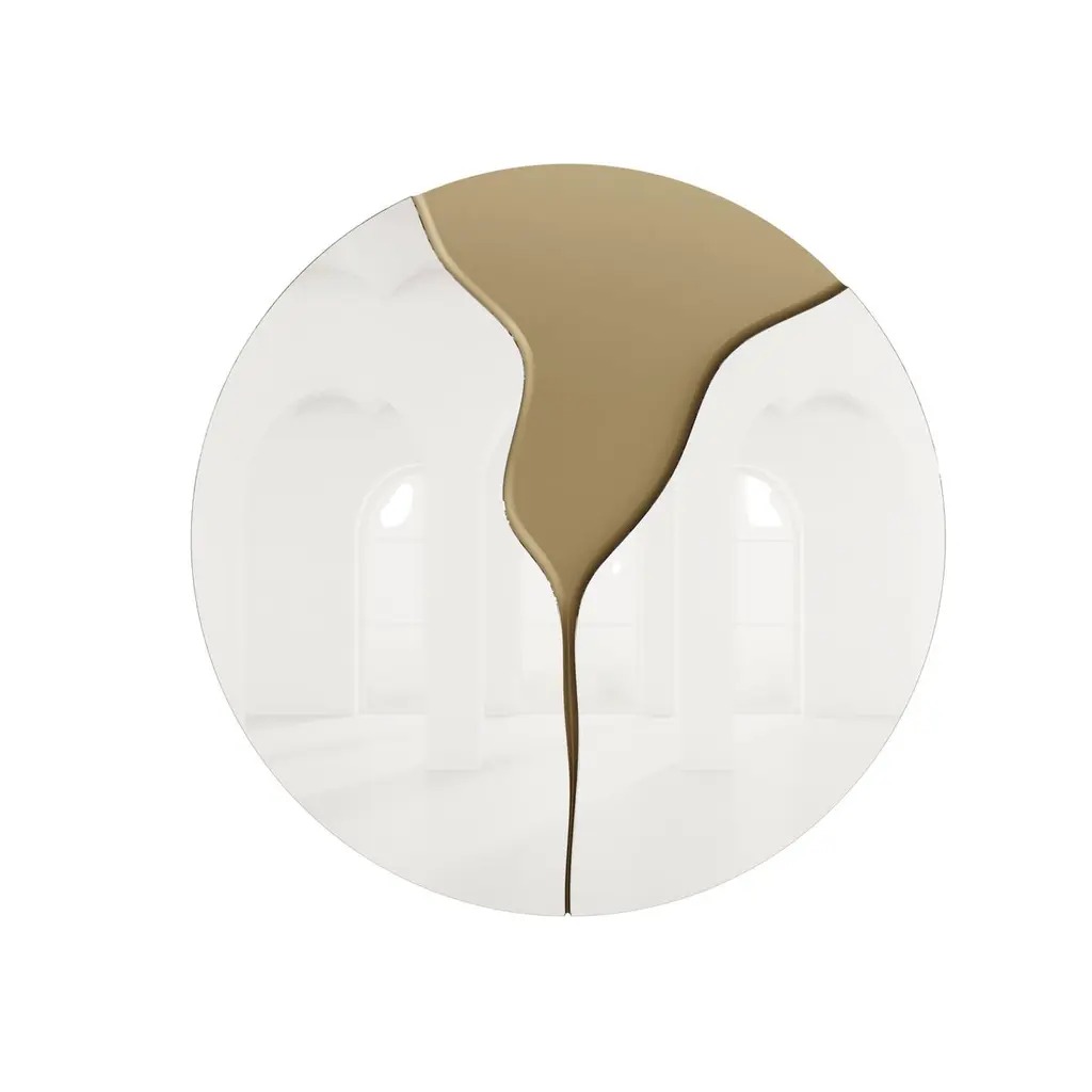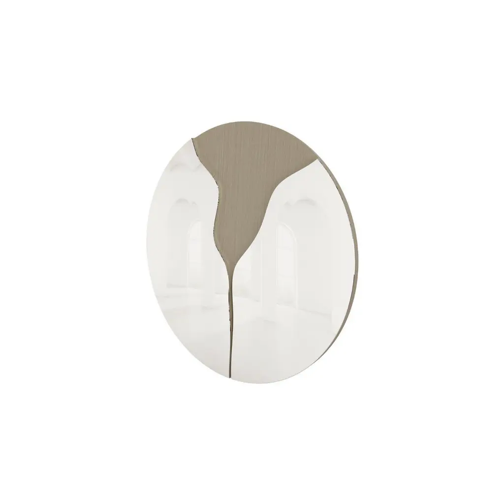 Contemporary Round Mirror – "Fleur" in Natural Mirror and detail Color Antique BrassThe Fleur mirror is a sculptural statement piece featuring a fluid color antique brass detail flowing across a natural mirror surface. Its organic form and bold contrast create a refined yet artistic focal point, perfect for contemporary and luxurious interiors.Primary image: Shown in Natural Mirror and Details Color Antique Brass.Essence Collection celebrates the timeless beauty of organic shapes by combining painted woods, natural stones, and a palette of neutral tones to create a luxurious aesthetic.The passion to create high-quality luxurious furniture, capable of providing emotional experiences is the reason for our existence and continuous evolution.Experience the unique atmosphere created by our Essence Collection.