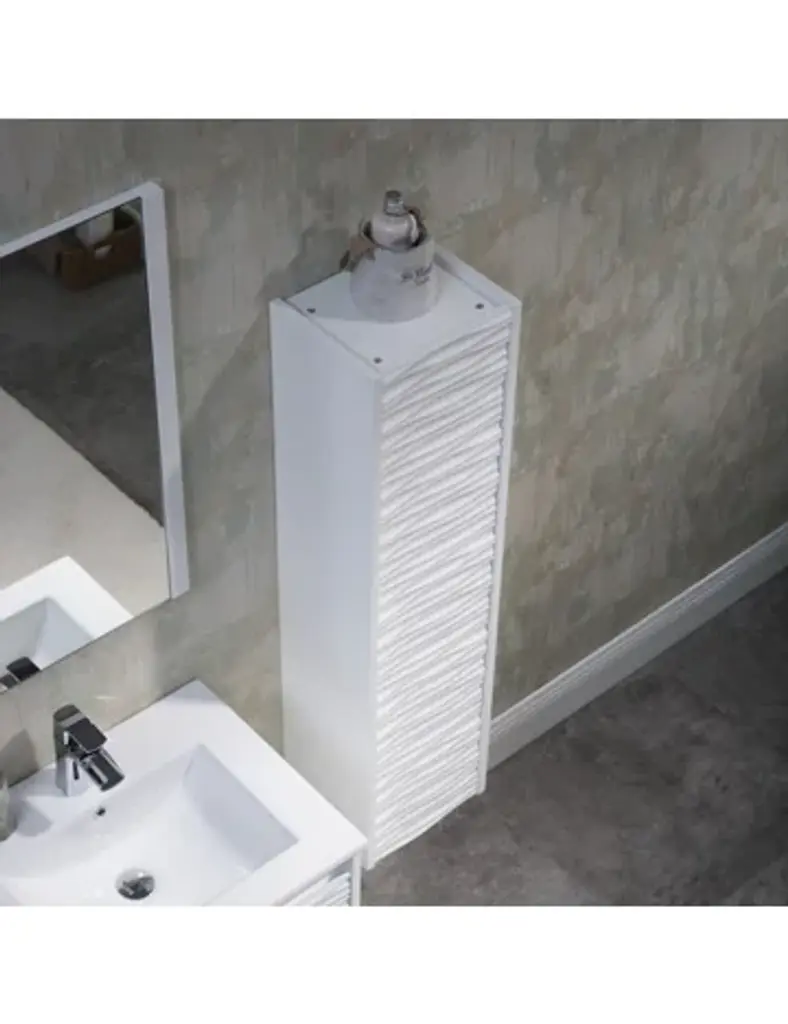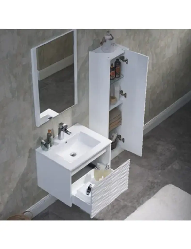 Floating Bathroom Vanity Set, Glossy White, 24" With Sink, Mirror & Side Cabinet