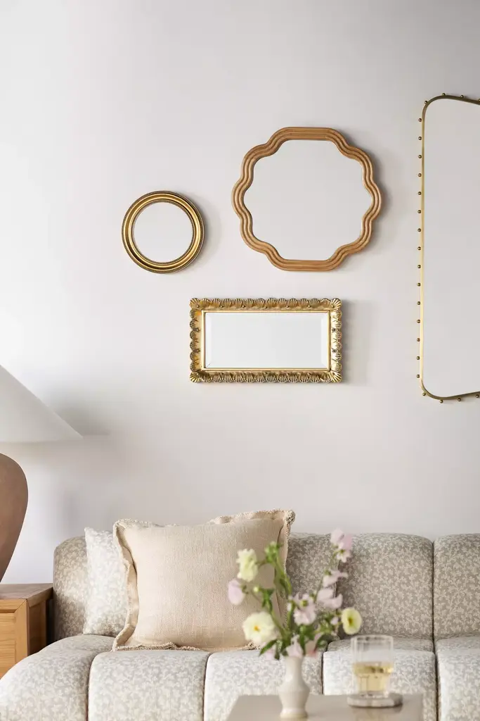 With a traditional beveled mirror and a fanned scalloped border, the Petite Florencia Mirror brings understated elegance to compact spaces, making it a perfect fit above a petite dresser, makeup vanity, or entryway console.