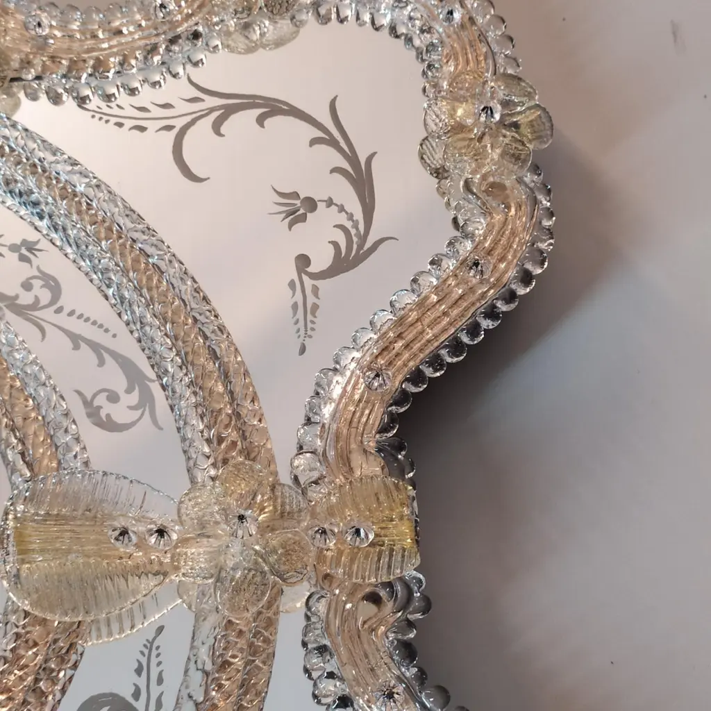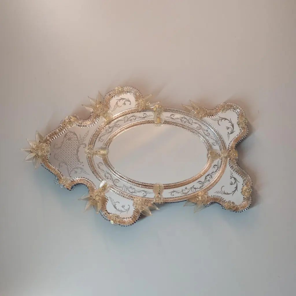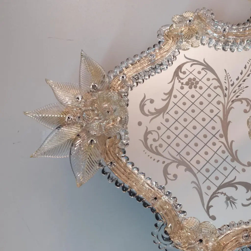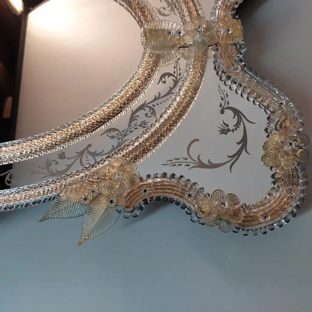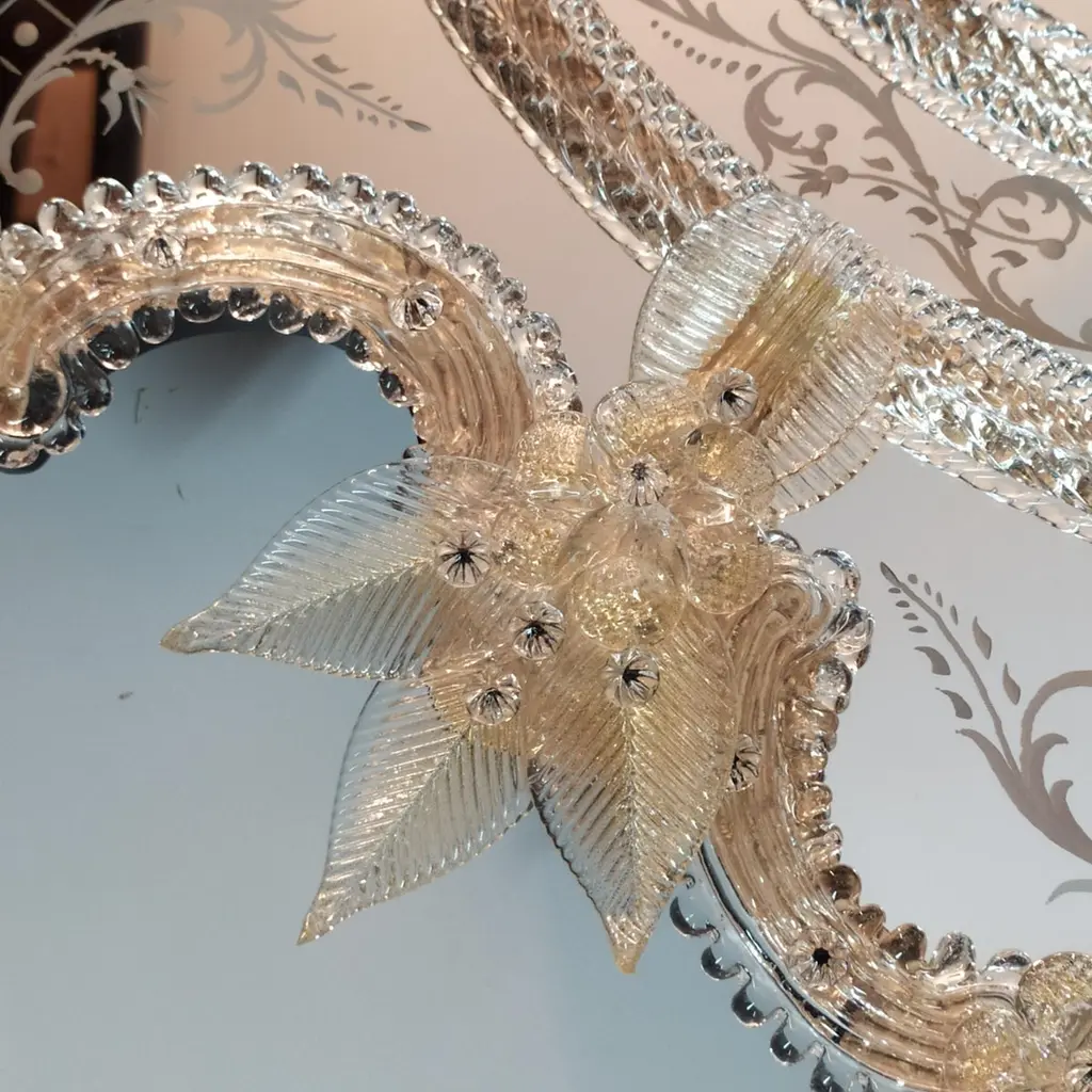 "Florida" Gold Venetian Murano Glass Mirror By Fratelli Tosi