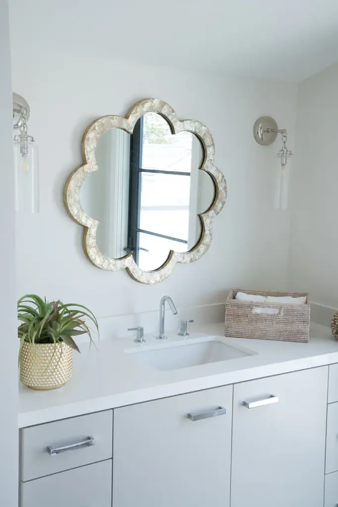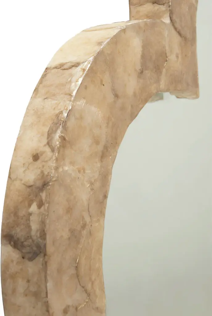 What a magnificent piece to adorn almost any wall in your home. The shape resembling a daisy is highlighted by this elegantly crafted frame made from capiz seashells with a gold-brownish hue. This might very well be the perfect piece for your bedroom, living room or even above your bathroom sink. Capiz Seashell hand set on wood frame.Mirrored glass can be cleaned with any glass cleaner. Use dry cloth to clean frame.Weighs approximately 28 lbs.