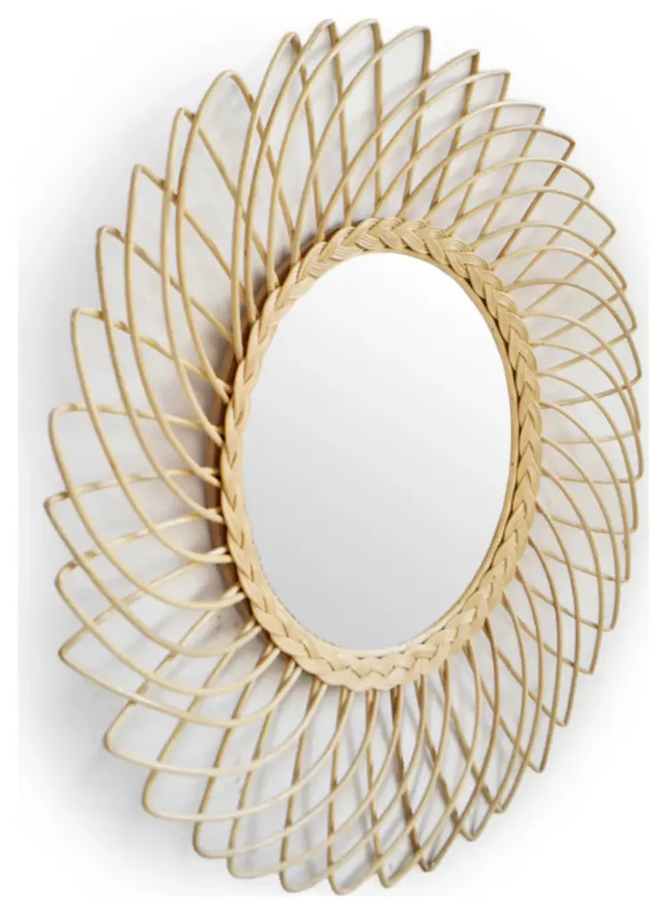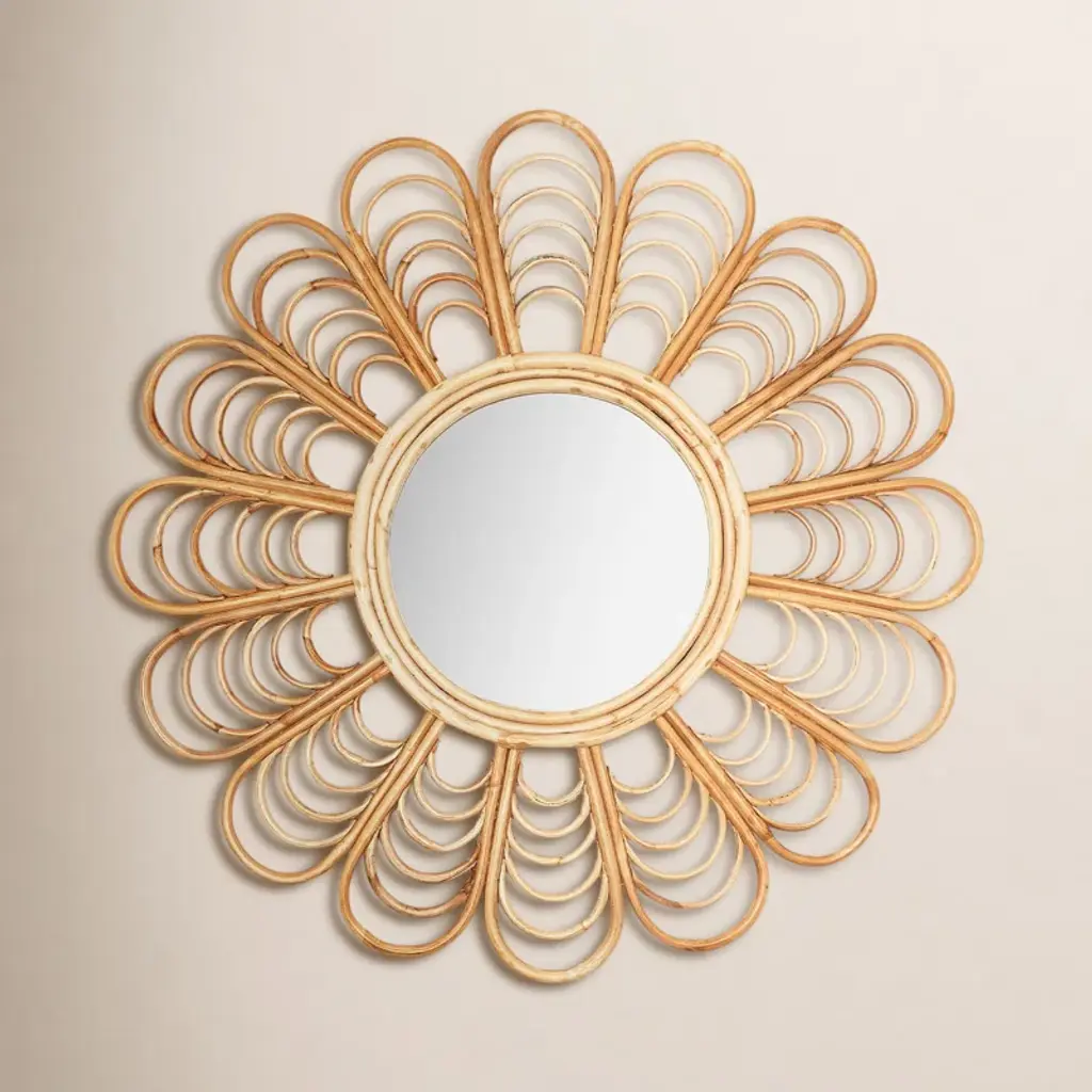 This captivating mirror combines the timeless allure of a flower's delicate petals with the rustic beauty of cane, creating a unique and stunning focal point for any space. Elevate your home decor with this enchanting piece that reflects not only your image, but also your impeccable taste in design
