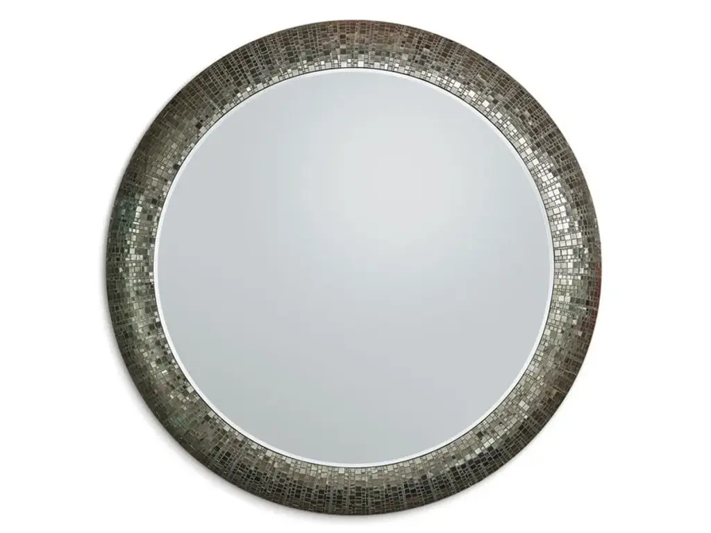 A splendid addition to both a traditional and a contemporary interior, this round mirror is a standout piece of textural allure. Its frame will reflect the surrounding light creating a shimmering effect of rare sophistication, thanks to the hand-applied mosaic that adorns it throughout, while an LED lighting from the back will enhance its resplendent appeal. The mirror has a silver finish (also available in bronze).