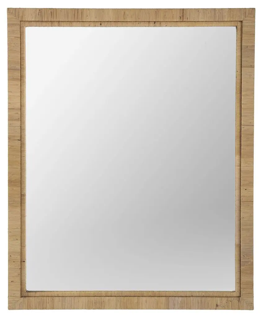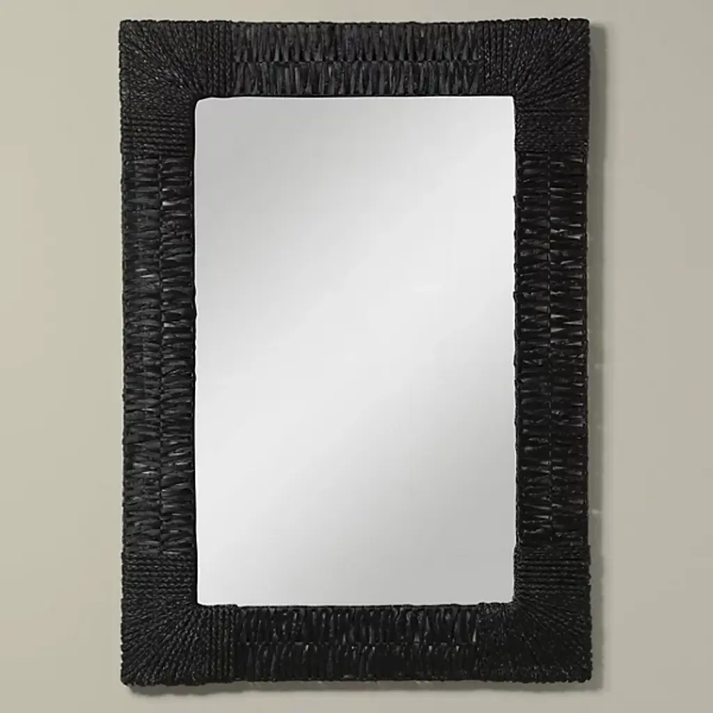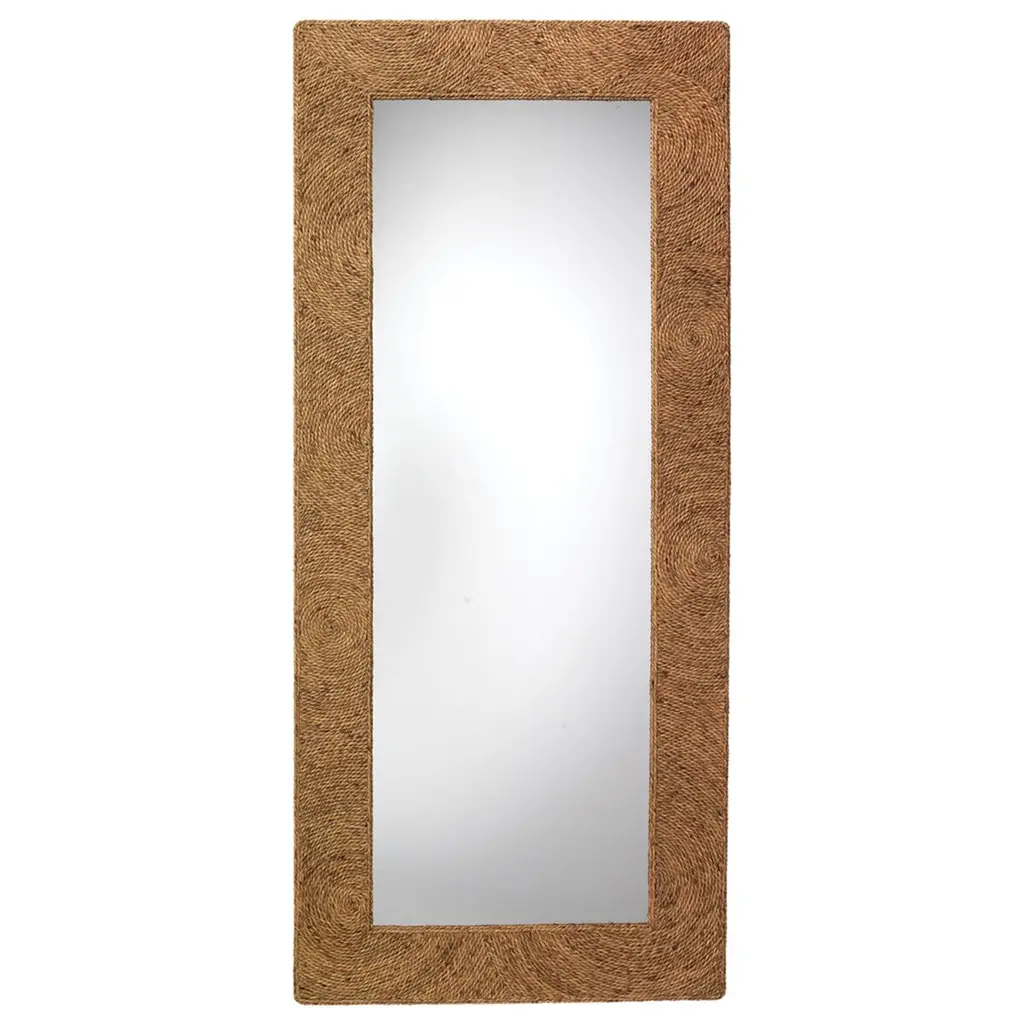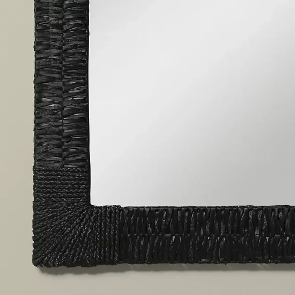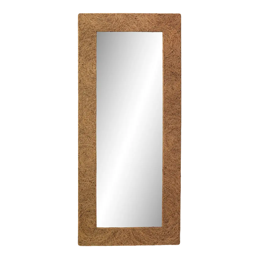 The Folha Rectangular Wall Mirror from Woven employs traditional weaving techniques with water hyacinth leaves. Each strand is carefully interwoven to create alternating patterns around the frame, while braided accents mark the corners with purposeful detail. The sustainable material brings natural elements indoors, making this mirror an artisanal addition to entryways, living rooms, or bathrooms.