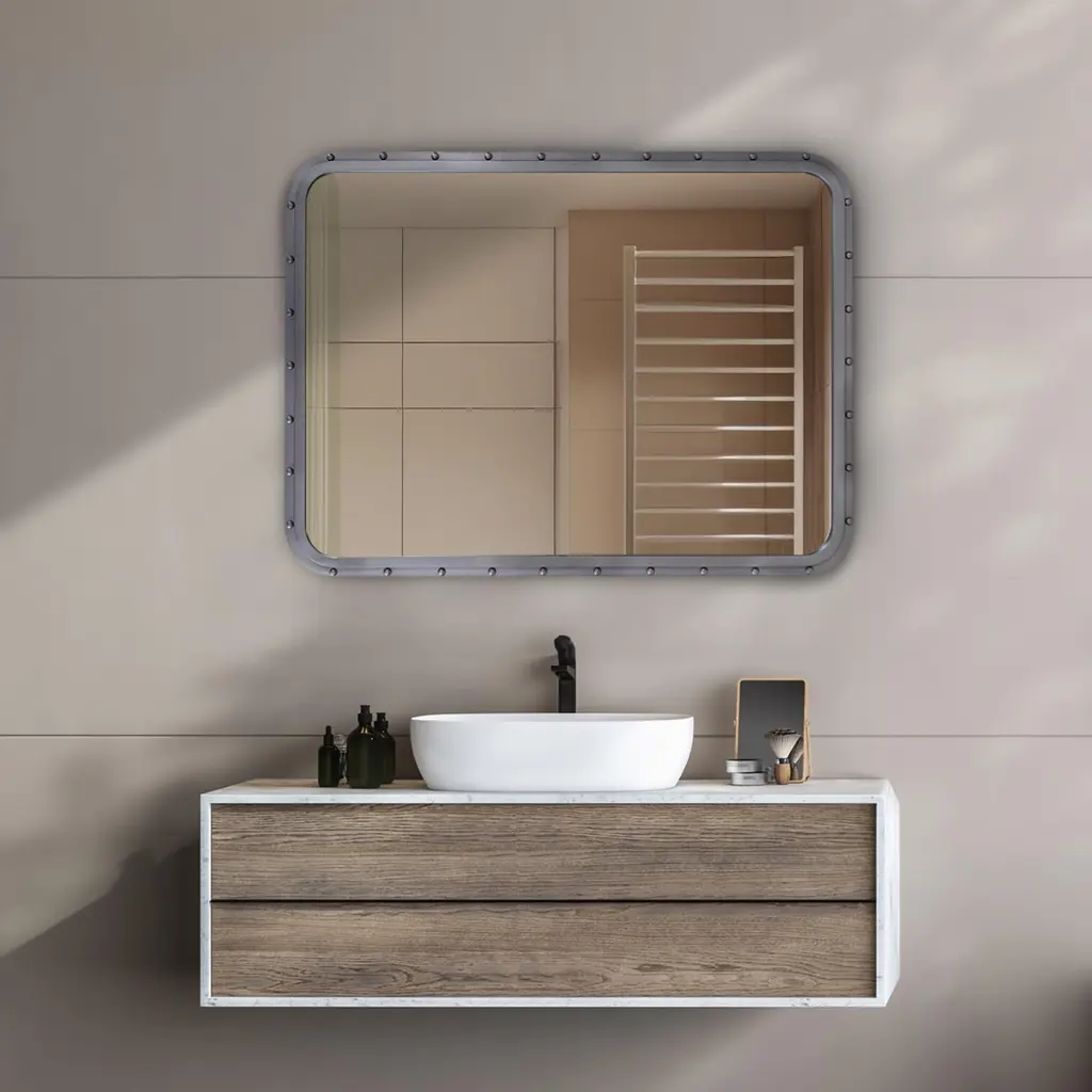 The design appeal for the industrial look complete with forged metal frames and classic riveted patterned construction, has become increasing popular in latest home decor trends. The Fordham collection features all of those industrial details along with a modern gray finish and rounded curved corners and lines. From round to rectangle each of these mirrors offers a perfect fit to any room in the home.