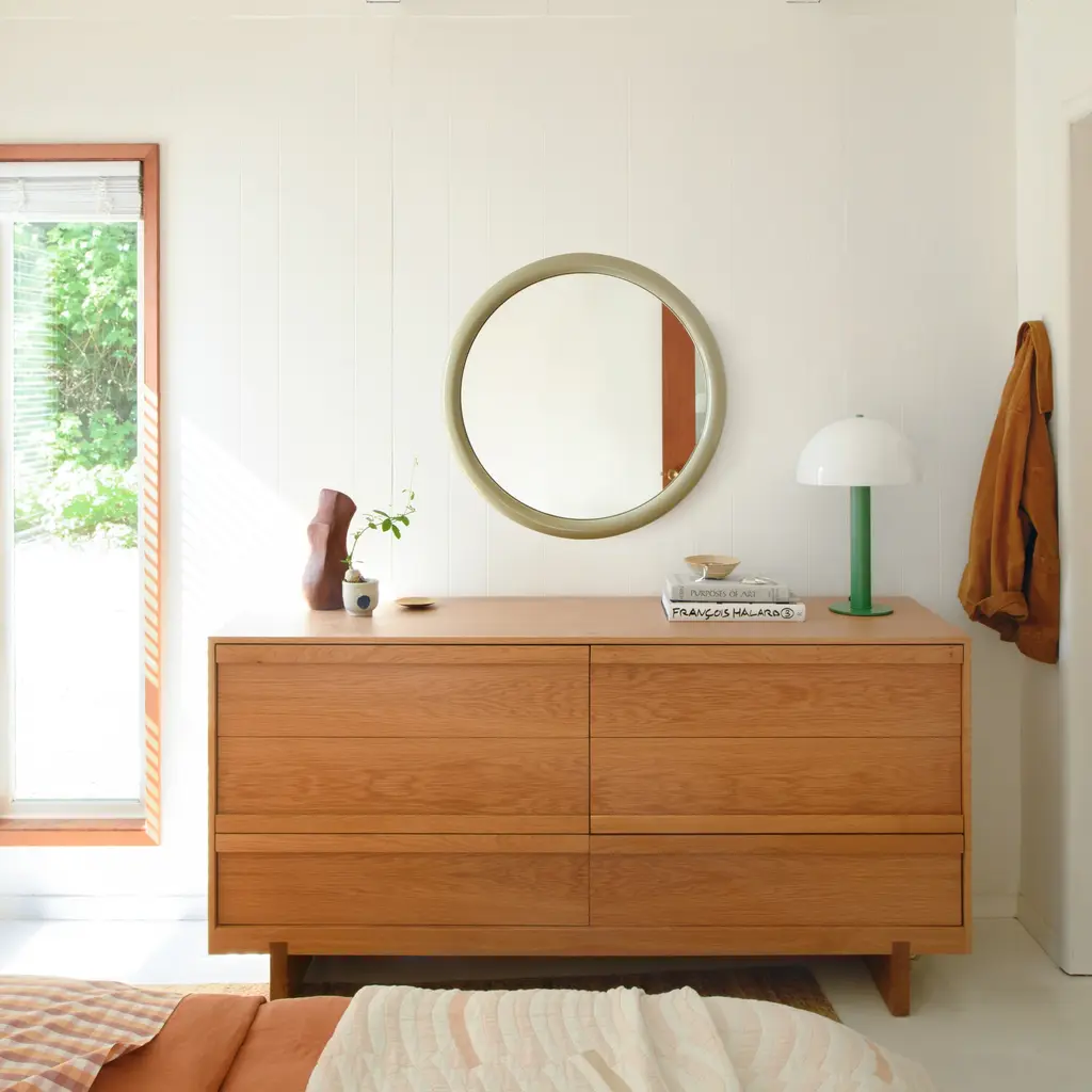 Elevate your home with the sleekly modern Forma Mirror. Crafted with precision, this mirror seamlessly marries minimalist design with a touch of industrial charm, making it a striking focal point in any space. Its clean lines and bold geometry create a captivating juxtaposition with the mirror's reflective surface, enhancing the illusion of space and light. Whether hung in an entryway, living room, bathroom, or bedroom, this mirror will effortlessly enhance any room with its reflective allure.