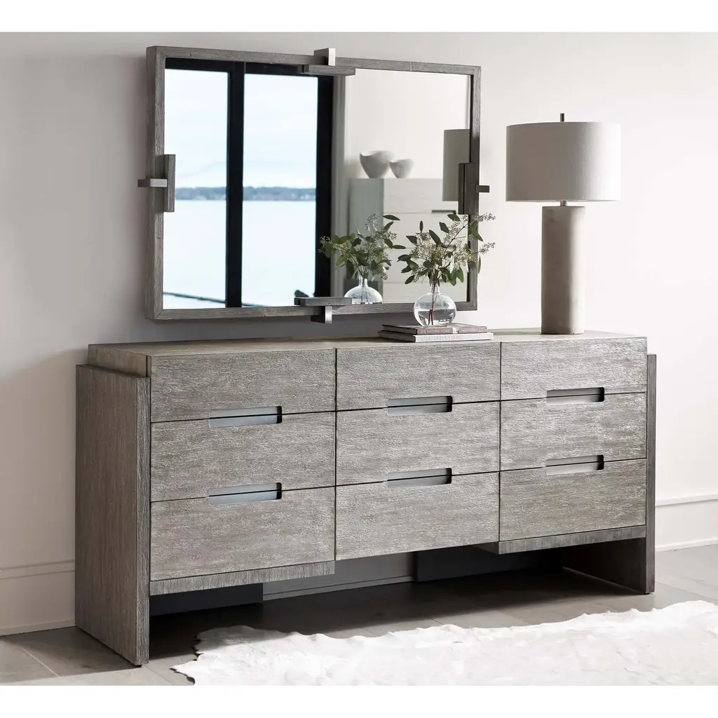 Foundations is a new, refined expression of modern rustic, defined by a minimalist style and relaxed comfort. The Foundations mirror combines simplicity and elegance in an understated design. Practical and streamlined, it features a wire-brushed acacia frame and mirrored glass with a beveled edge. It can be hung either vertically or horizontally.