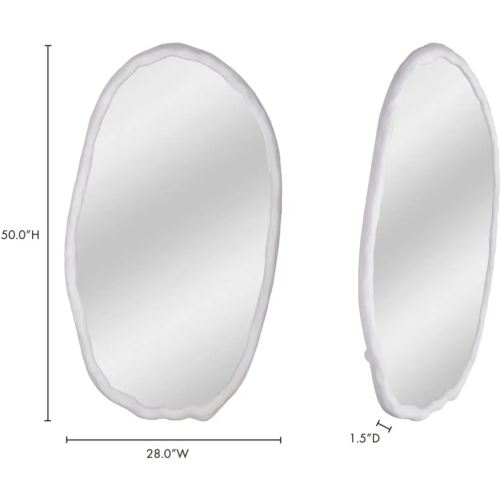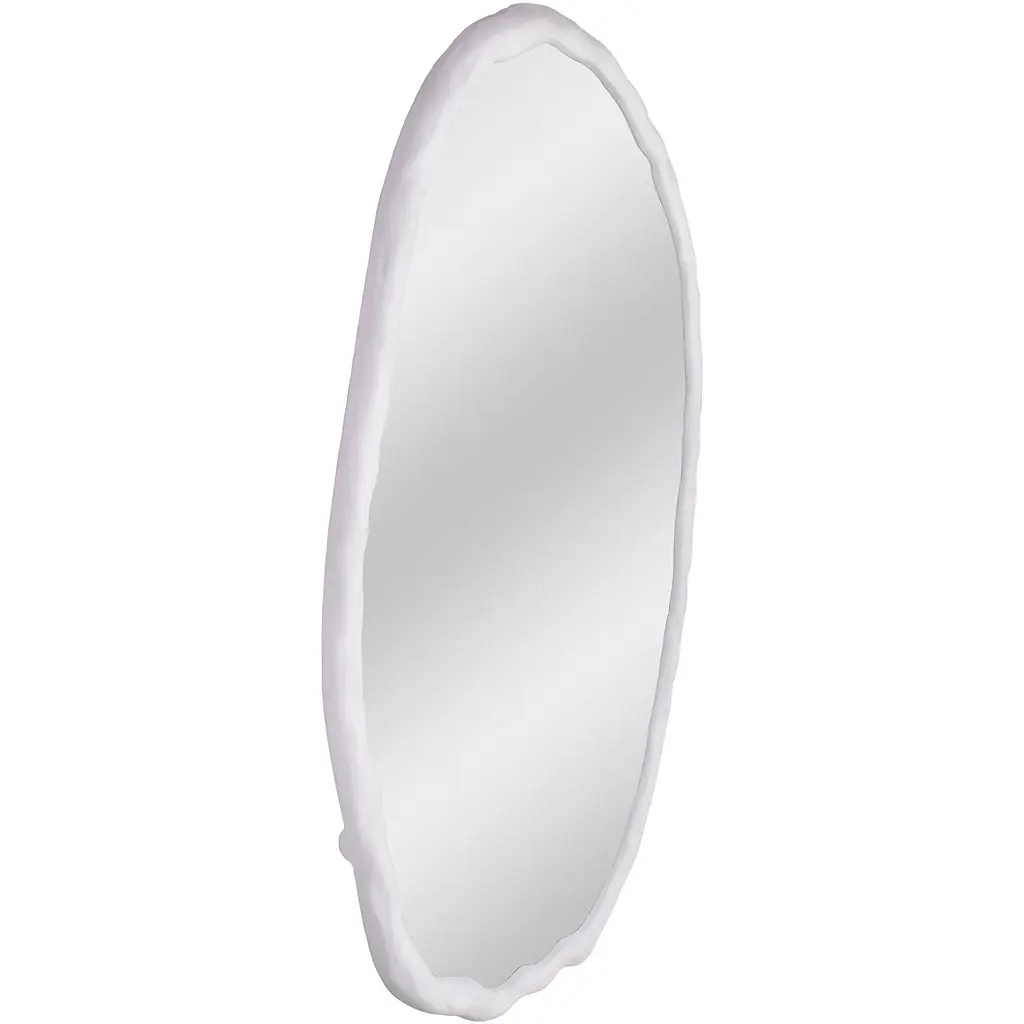 Amp up those positive reflections with this white beauty. The Foundry oval wall mirror will hang centerfold wherever you've been looking the most. Mirrors brighten up your space in an instant, and this one hangs easily in a lighter-weight aluminum frame. Artfully rustic with an organic touch to its wood-like design.