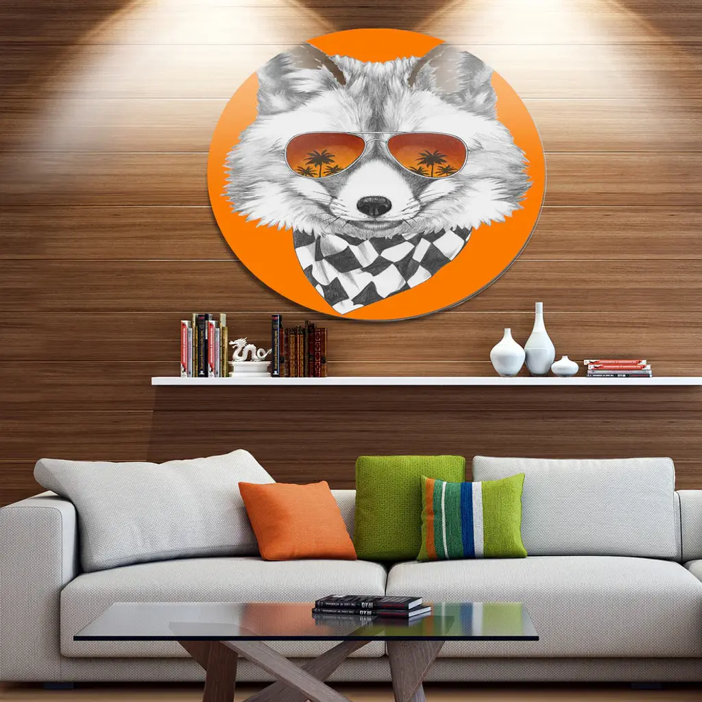 Bring Contemporary Abstraction to your home with this large Circle Metal wall art. This Fox with Mirror and Sunglasses Metal Artwork makes it the focal point of any room or office. - White Gloss Coating ensures colors are extra vibrant with light reflection.- Aluminum grade Sheet Metal with 1 inch mounting frame on the back giving the illusion that the artwork is floating on the wall..- Mounting Brackets are included along with instructions.- High Quality Digital images are created directly into a glossy aluminum panel producing a stunning and captivating print into the glossy finish of the metal.- Water, Fire and Scratch resistant HD Aluminum panels.- Looks better than any photo paper and guaranteed to last at least 20 years- Easy to clean with a microfiber cloth. Colors are far superior to regular Canvas Art. - Easy to Hang