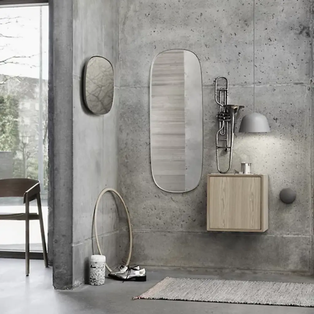 The Framed Mirror by Muuto embraces the simple, functional beauty that Scandinavian design is founded on. Created by the Norwegian design duo Anderssen & Voll, this mirror puts an artistic spin on the traditional mirror. It gives the wall a clean, minimal feel as a rounded-edged frame embraces a panel of reflective glass. This powder-coated steel frame is sturdy yet slender, making it easy to pair with art and other mirrors along the wall for a fun feel.