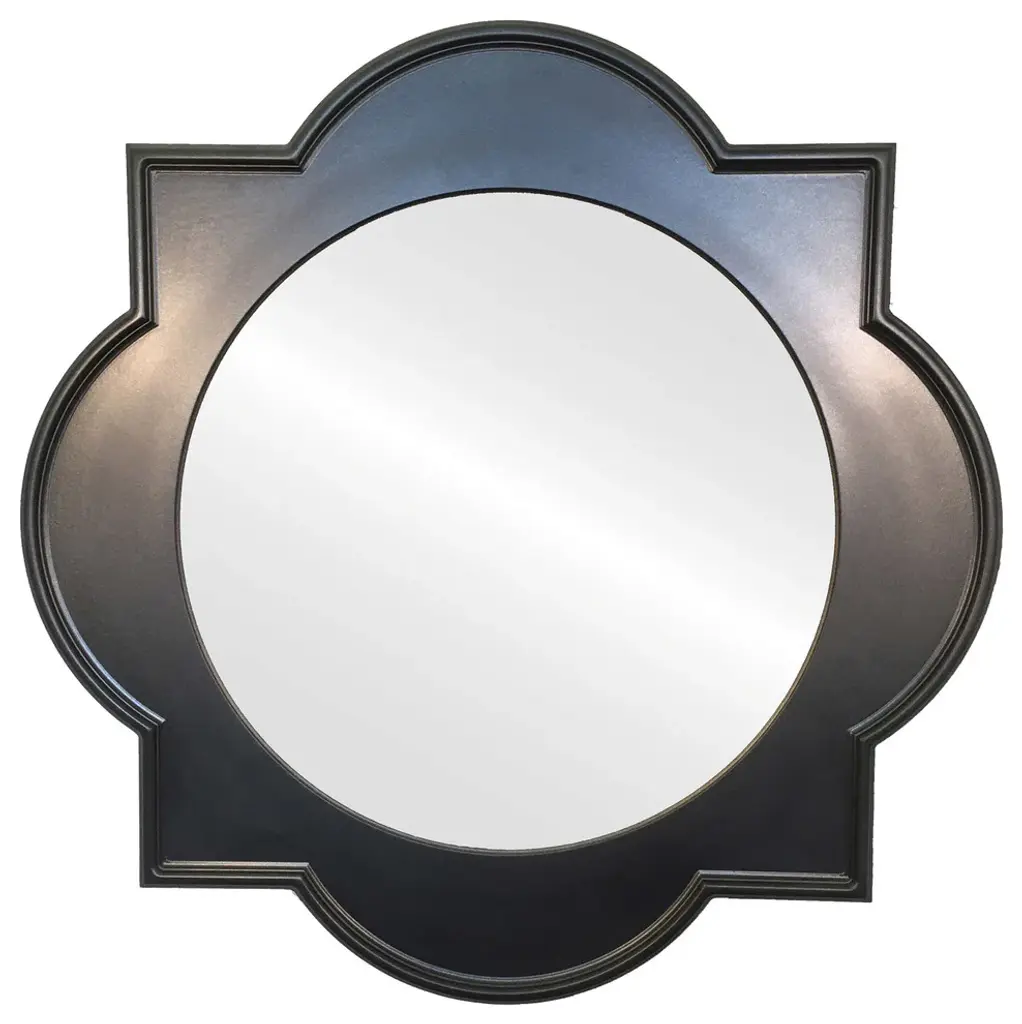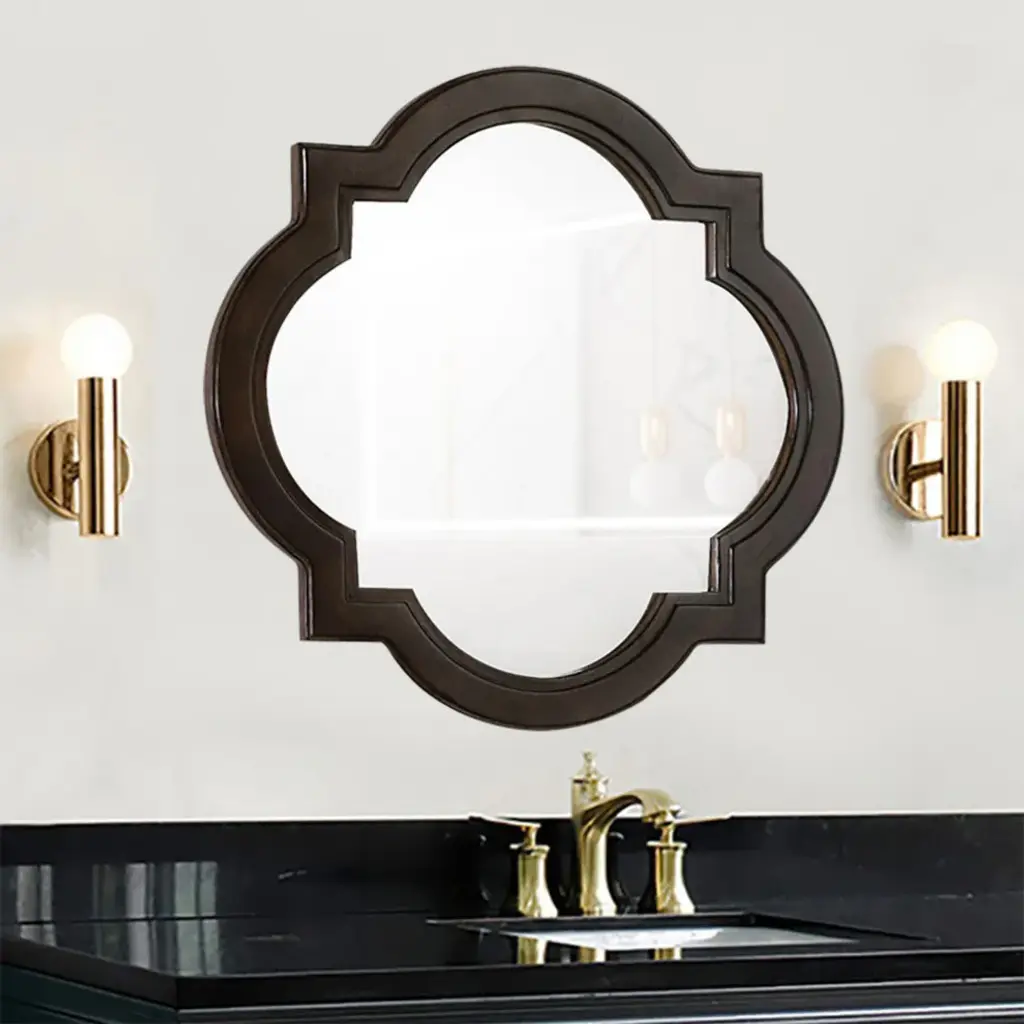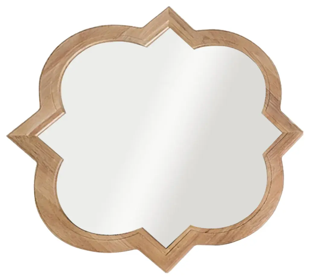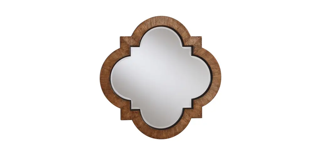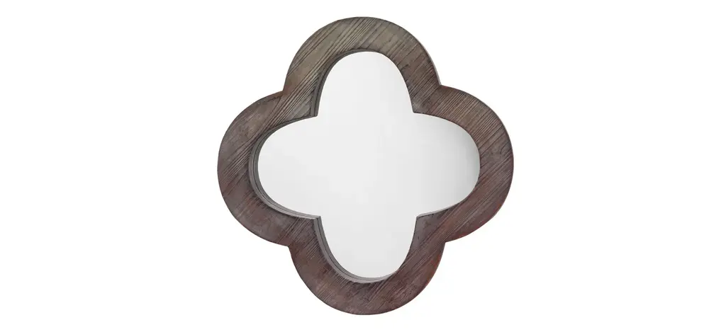 Bellaterra Home''s 23 in. x 23 in. wood framed Quatrefoil mirror will add a touch of elegance to your room. The waterproof wood and the high quality prevents this elegant piece from the humidity and rusting. The mirror can be hung 2 different ways and comes with all the mounting hardware necessary to intall this piece. Mirrors comes in colors of Black, Gray, Natural Wood, Walnut, and White.Mirror Included: YesFaucet Included: NoCountertop Included: NoBasin Included: NoHardware Included: YesBacksplash Included: No